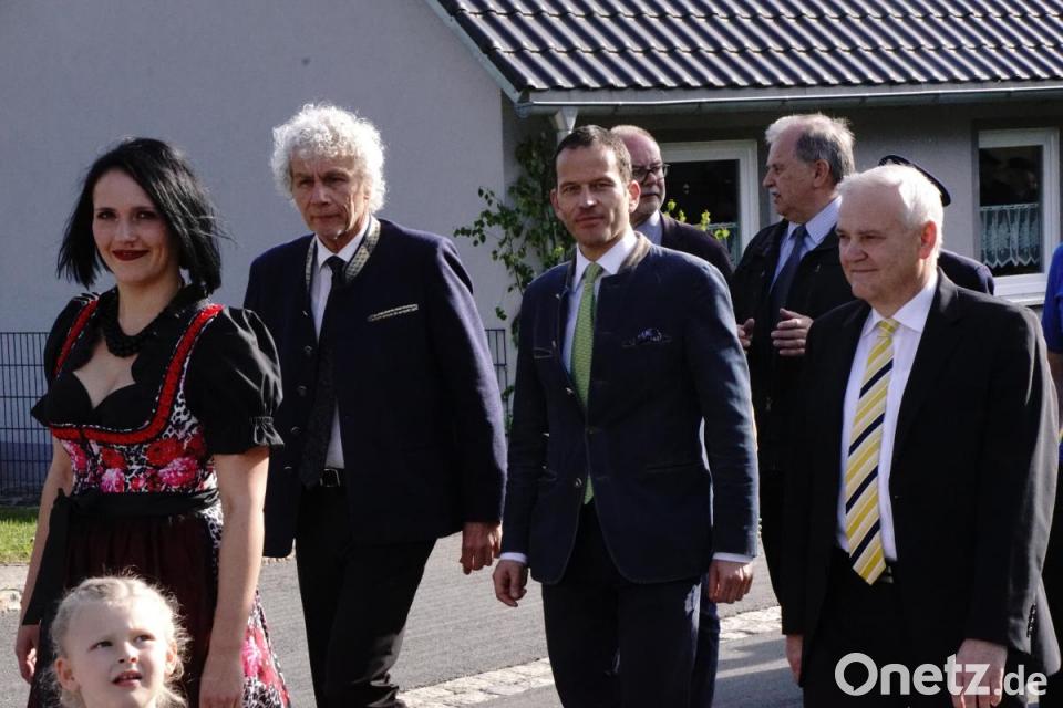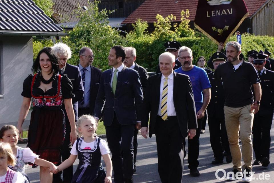 Pfarrer Markus Bruckner segnete das Fahrzeug am Samstag auf dem Dorfplatz. Der Himmel zeigte sich am späten Nachmittag von seiner besten bayerischen Seite. 16 Feuerwehren und 8 Vereine umrahmten den kirchlichen und weltlichen Teil des Festes. Am Gerätehaus setzte sich um 18 Uhr der lange Festzug nach dem Startböller von Norbert Braunreuther in Bewegung. Leni Schraml führte die Prozession zum Dorfplatz. In den Reihen der Ehrengäste waren auch Bundestagsabgeordneter Albert Rupprecht, Kreisbrandrat Andreas Wührl, Kulmains Bürgermeister Günter Kopp und Albert Sollfrank, Bürgermeister Peter Geiser aus Schauenstein sowie Abordnungen der Wehren aus Windischengrün und Pilgramsreuth.