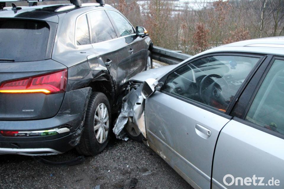 Am Dienstagnachmittag gegen 17 Uhr ereignete sich auf der Staatsstraße 2665 bei Zintlhammer an der Kreuzung zur Bundesstraße ein Verkehrsunfall mit zwei Autos. Ein junger Mann wollte in einem Audi Q5 von der B 299 auf die vorfahrtsberechtigte Staatsstraße in Richtung Pressath einbiegen und übersah dabei einen 32-jährigen Audi-A4-Fahrer aus dem Gemeindebereich Eschenbach. Dieser fuhr im Kreuzungsbereich frontal in die linke Seite des Audi Q5, beide Fahrzeuge krachten gegen die Leitplanke. Nach 50 Metern kamen sie zum Stehen.