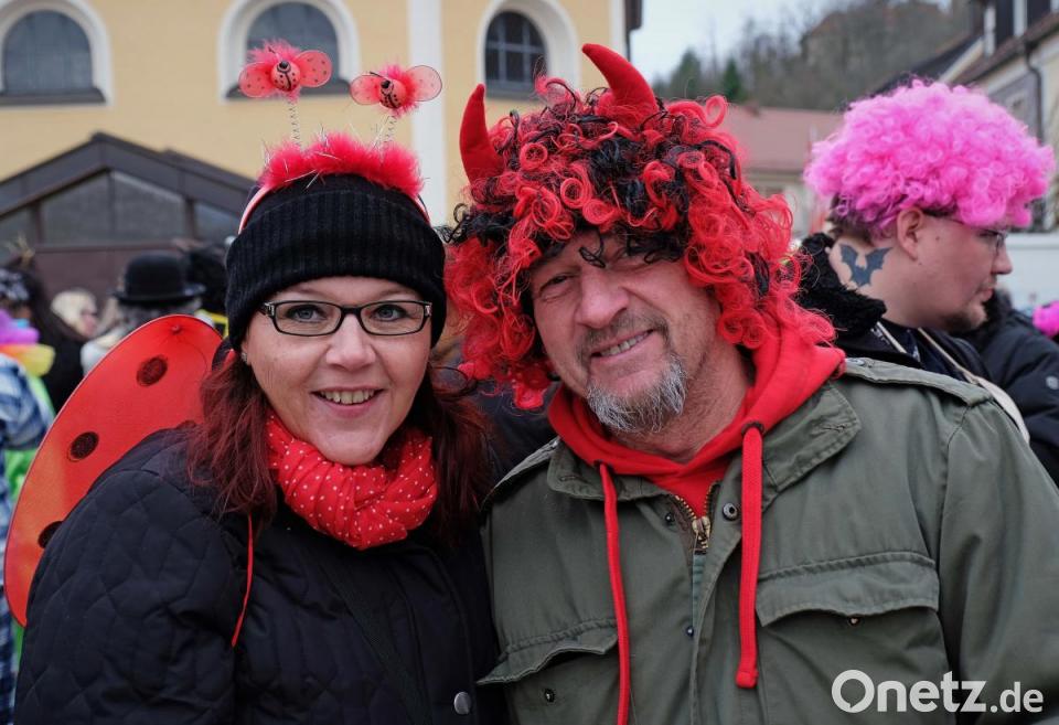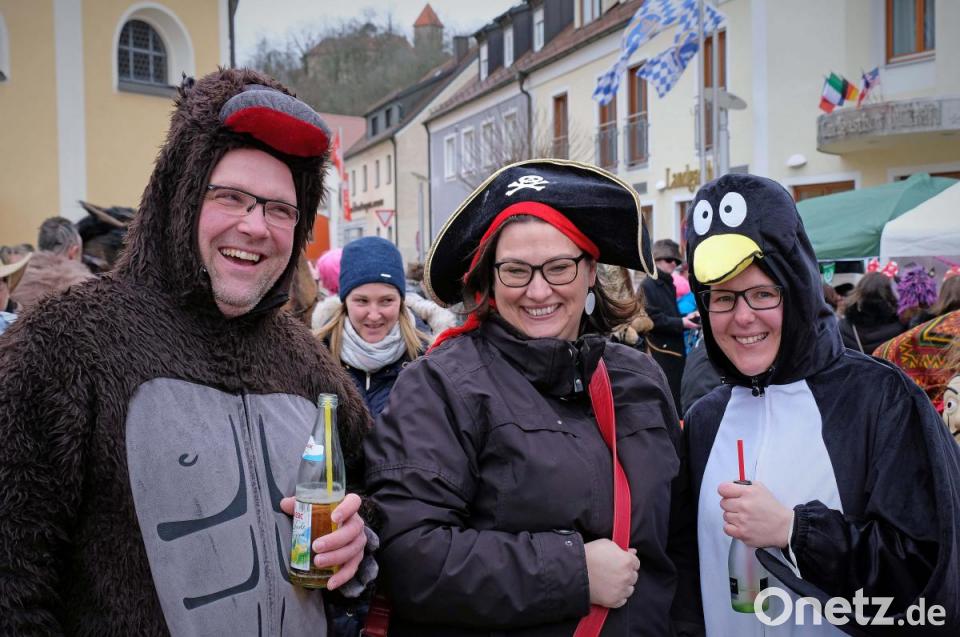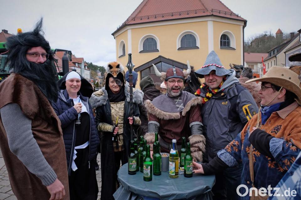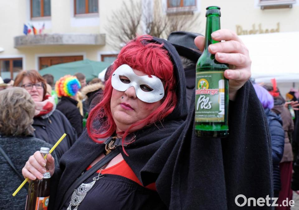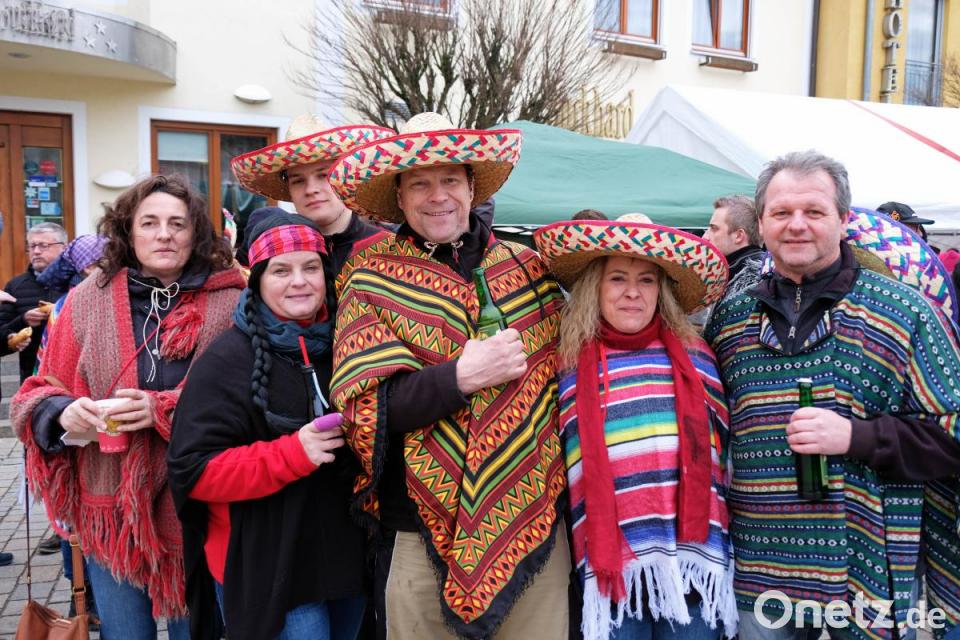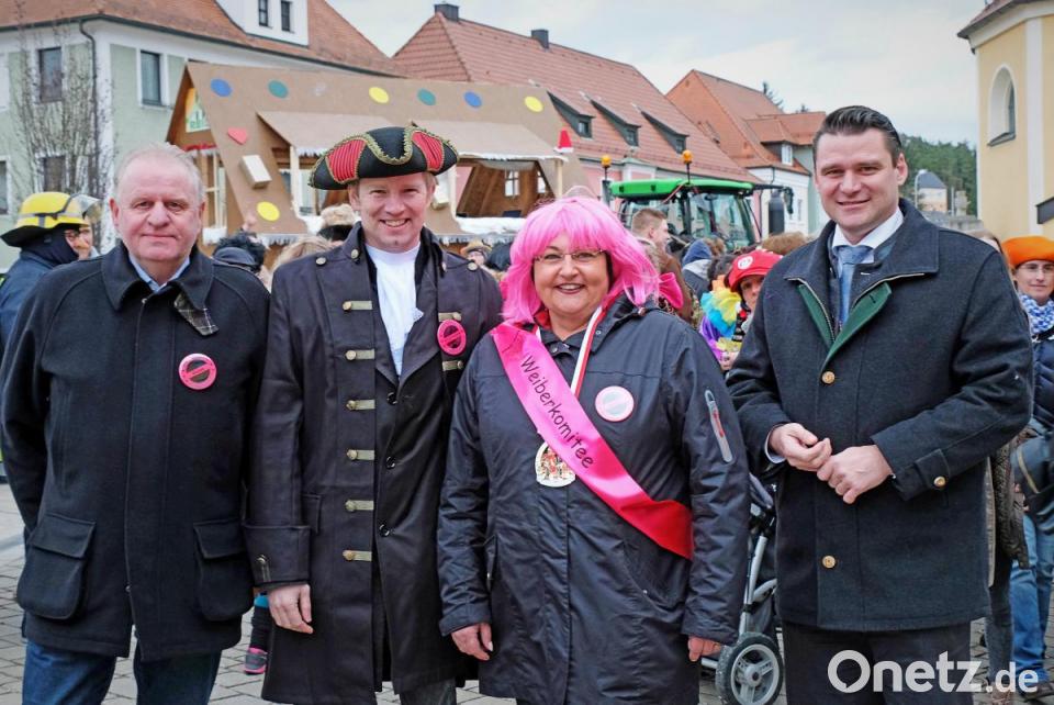 Schon wieder fliegt ein Sombrero durch die Luft, denn es ist ganz schön windig. Das tut der Stimmung keinen Abbruch und es herrscht großes Gedränge auf dem Marktplatz zwischen dem Faschingswagen und den aufgebauten Zelten. Die meisten Besucher sind in fantasievollen bunten Faschingskostümen gekommen und verbreiten gute Laune. Viele Gruppen, Paare und Familien tragen einheitliche Kostüme, so etwa der Bürgermeister mit Gattin als Piratenkäptn mit Piratenbraut – besonders auffällig eine große Anzahl von Phantasy-Kriegern. Kein Wunder, dass bei den Organisatorinnen, dem „Wernberger Weiberkomitee“ mit Präsidentin Helga Burkhard, angesichts des großen Andrangs fröhliche Gesichter herrschen. Zusammen mit Bürgermeister Konrad Kiener begrüßt sie die heitere Faschingsgesellschaft vom Faschingswagen herab mit „Wernberg Helau“.