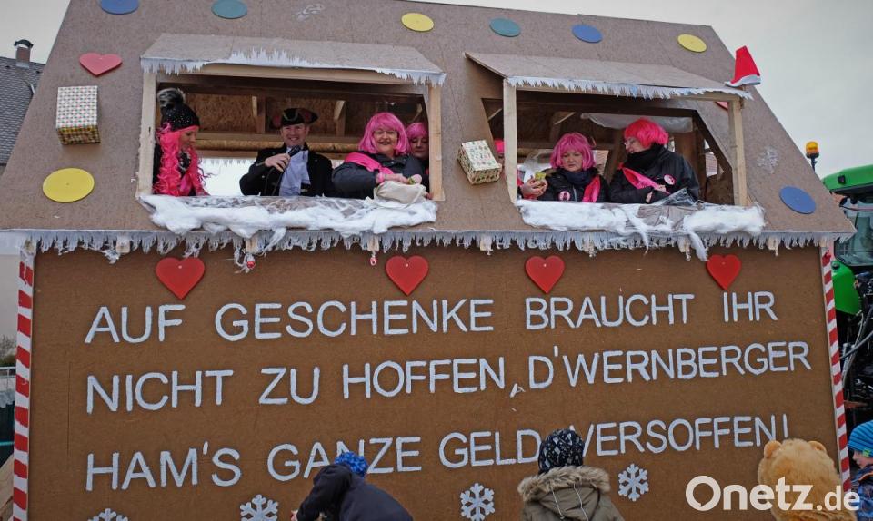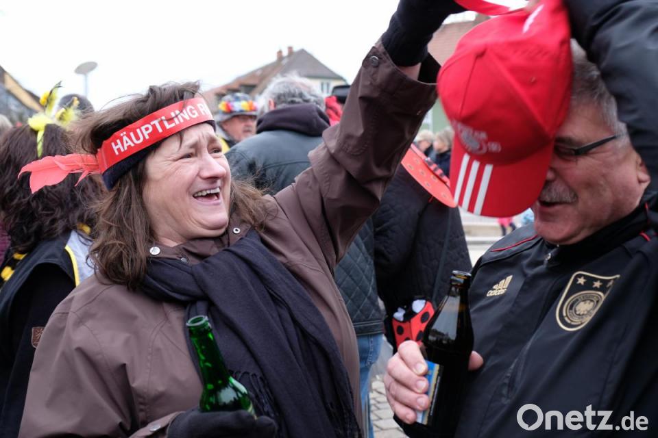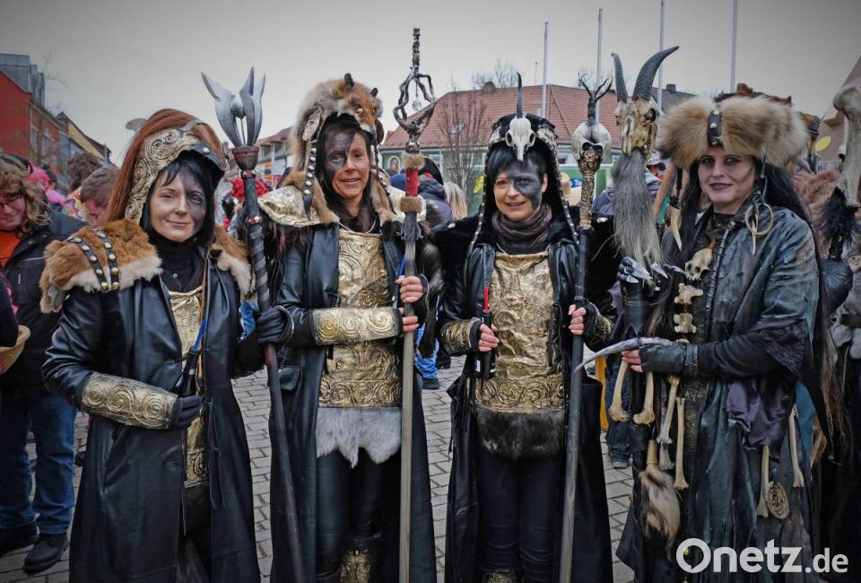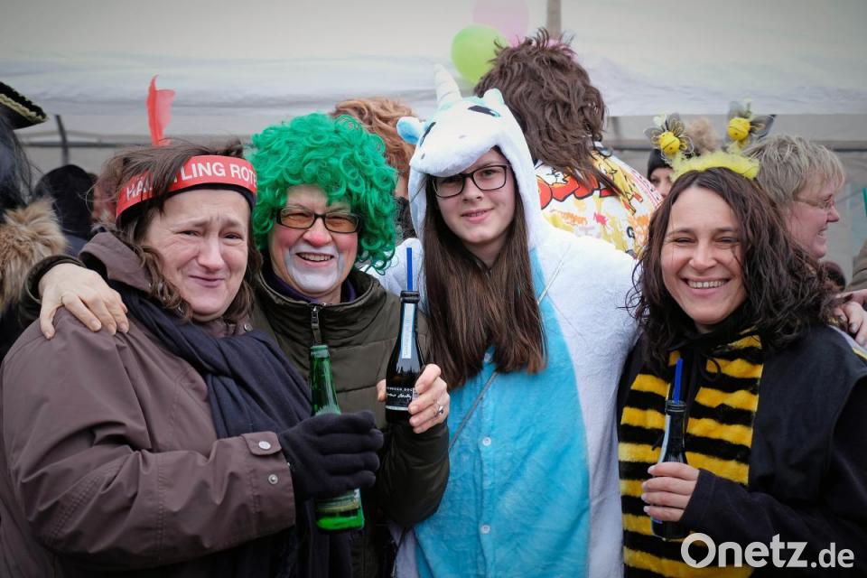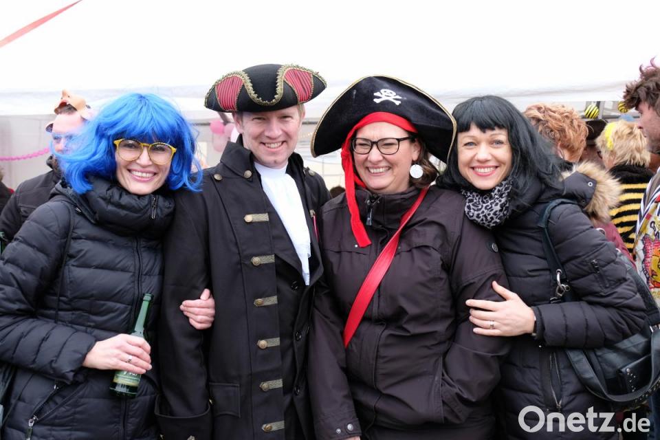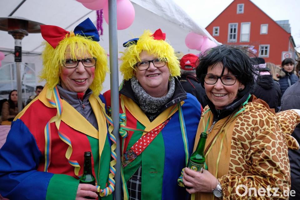 Schon wieder fliegt ein Sombrero durch die Luft, denn es ist ganz schön windig. Das tut der Stimmung keinen Abbruch und es herrscht großes Gedränge auf dem Marktplatz zwischen dem Faschingswagen und den aufgebauten Zelten. Die meisten Besucher sind in fantasievollen bunten Faschingskostümen gekommen und verbreiten gute Laune. Viele Gruppen, Paare und Familien tragen einheitliche Kostüme, so etwa der Bürgermeister mit Gattin als Piratenkäptn mit Piratenbraut – besonders auffällig eine große Anzahl von Phantasy-Kriegern. Kein Wunder, dass bei den Organisatorinnen, dem „Wernberger Weiberkomitee“ mit Präsidentin Helga Burkhard, angesichts des großen Andrangs fröhliche Gesichter herrschen. Zusammen mit Bürgermeister Konrad Kiener begrüßt sie die heitere Faschingsgesellschaft vom Faschingswagen herab mit „Wernberg Helau“.