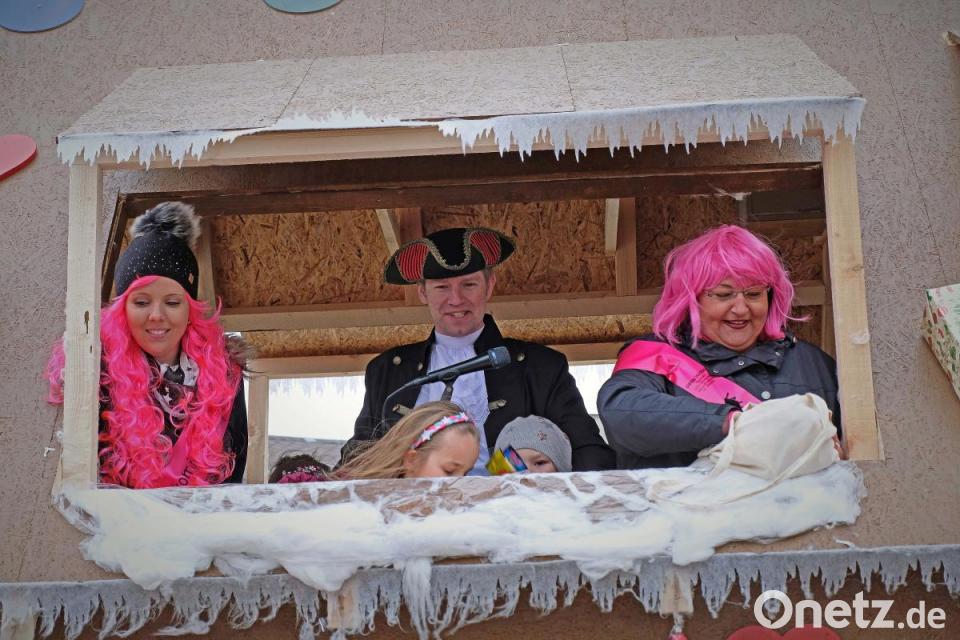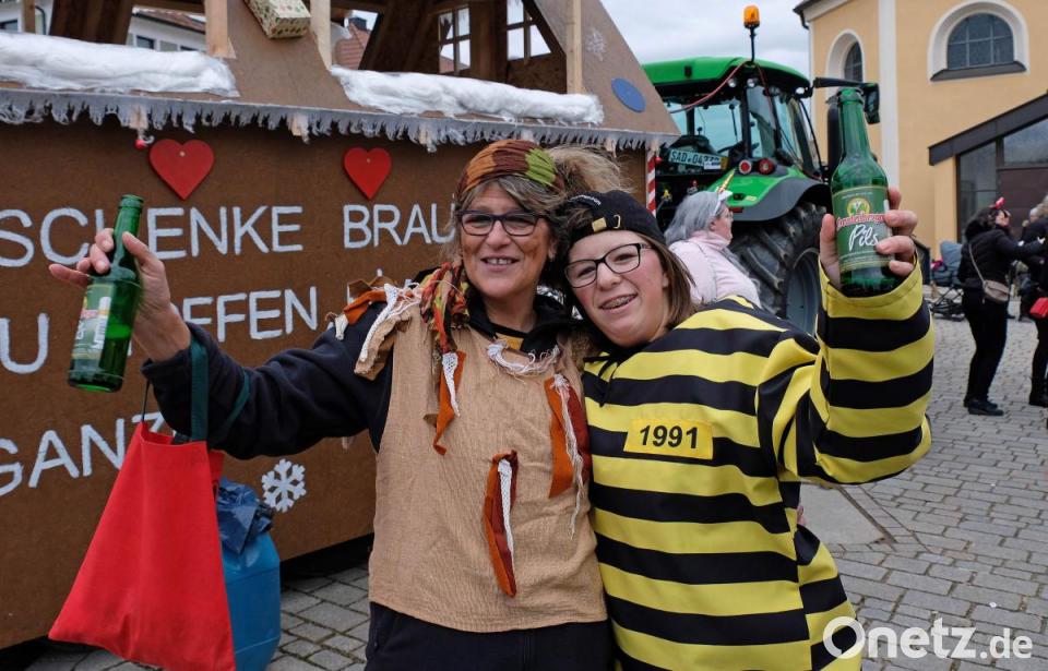 Die Kinder stürzen sich begeistert auf die herabfliegenden Süßigkeiten und die Stimmung steigt. Aus den Lautsprechern ertönen mitreißende Faschingshits und davor beginnen schon viele zu tanzen. Auch MdB Marianne Schieder und zahlreiche Markträte sind anwesend. Dazu gesellt sich unter großem Beifall Landrat Thomas Ebeling, der nach seinem Grußwort auch noch mit Konrad Kiener Getränke verkaufte.