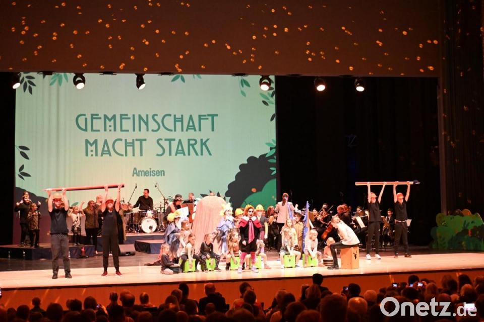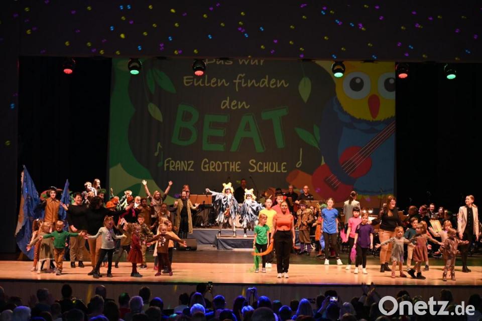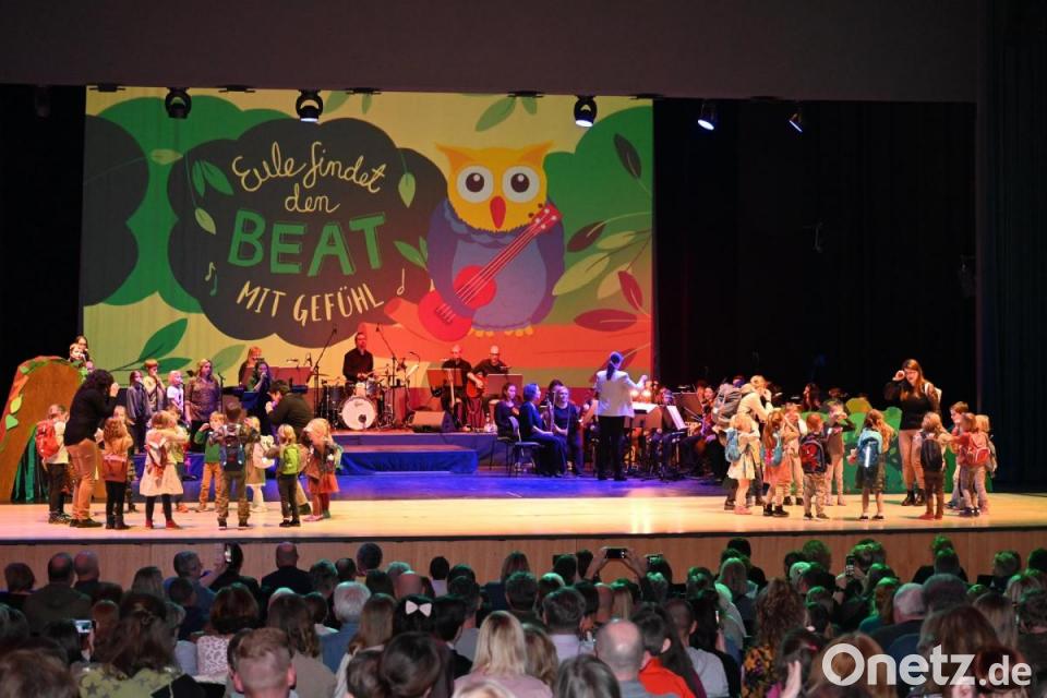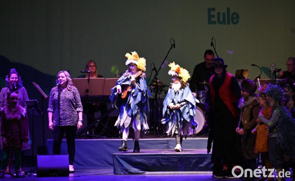 "Viel Arbeit, viel Schweiß, viele Tränen", resümierte Musikschulleiter Thorsten Willecke augenzwinkernd die seit September laufenden Vorbereitungen und Proben für die Fortsetzung des Eulen-Musicals "Eule findet den Beat – mit Gefühl". Gespannt waren die Verantwortlichen darauf, ob sich heuer erstmalig bei zwei Aufführungen die Max-Rege-Halle füllt. Zwar nicht ausverkauft, aber zur Zufriedenheit aller sehr gut besetzt, verfolgten die Zuschauer das bunte Treiben mit wieder weit über 100 Mitwirkenden.