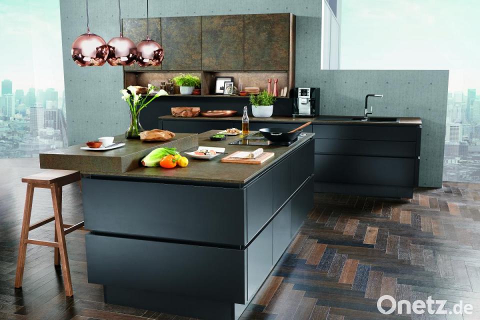 Besonders edel und modern wirkt die neue Küche in dunklen Farben. Schwarz, Grau oder Anthrazit in Mattoptik lösen langsam aber sicher die weißen Hochglanz-Küchen ab. Die matten Oberflächen haben einen entscheidenden Vorteil: Fingerabdrücke sind kaum zu sehen. Eine spezielle Anti-Fingerprint-Beschichtung verlängert die Freude an einer sauber anmutenden Küche – perfekt für den einen oder anderen Putzmuffel. Spülen und Armaturen sind zukünftig vermehrt in Chrom, Messing, Kupfer, Gold oder Schwarz erhältlich.