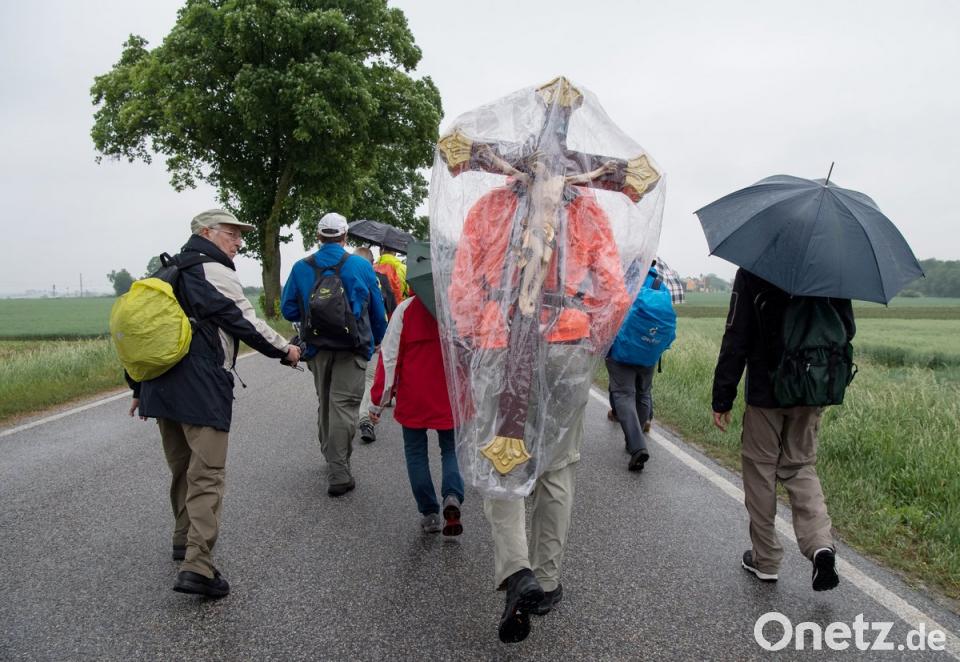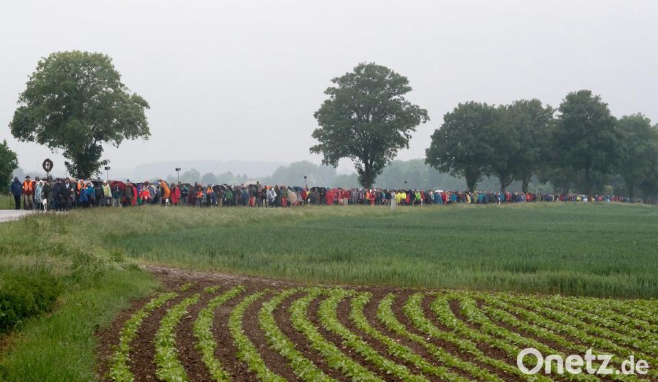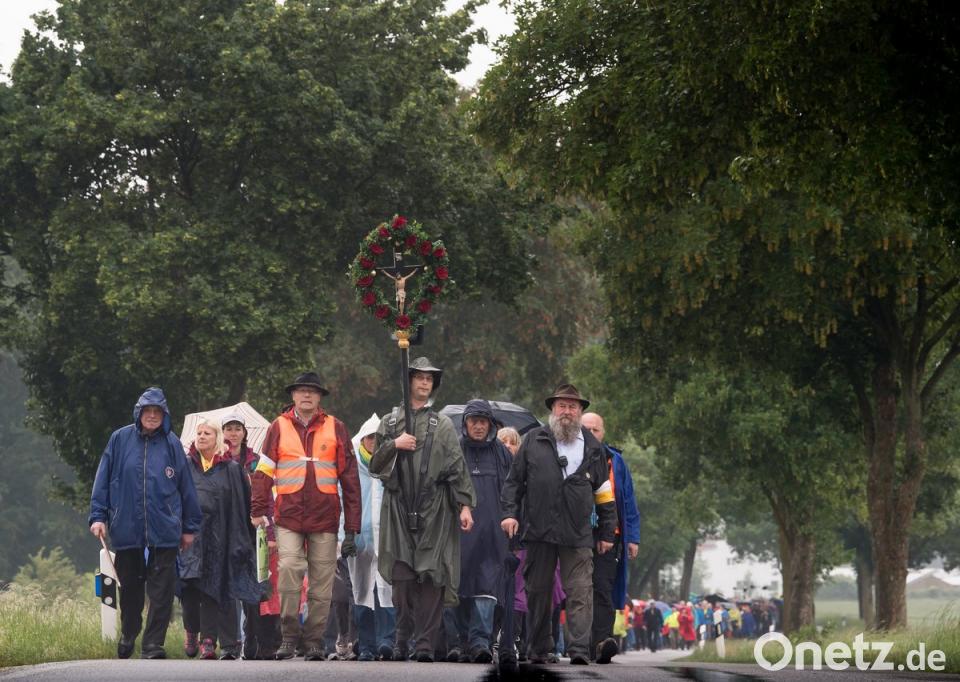 Der Regensburger Bischof Rudolf Voderholzer begrüßte und segnete die Gläubigen am Startpunkt und begleitete sie ein Stück auf ihrem langen Weg. An diesem Freitagabend will er wieder zu den Gläubigen stoßen und sie am dritten Tag auf der restlichen Strecke bis zum Ziel begleiten.