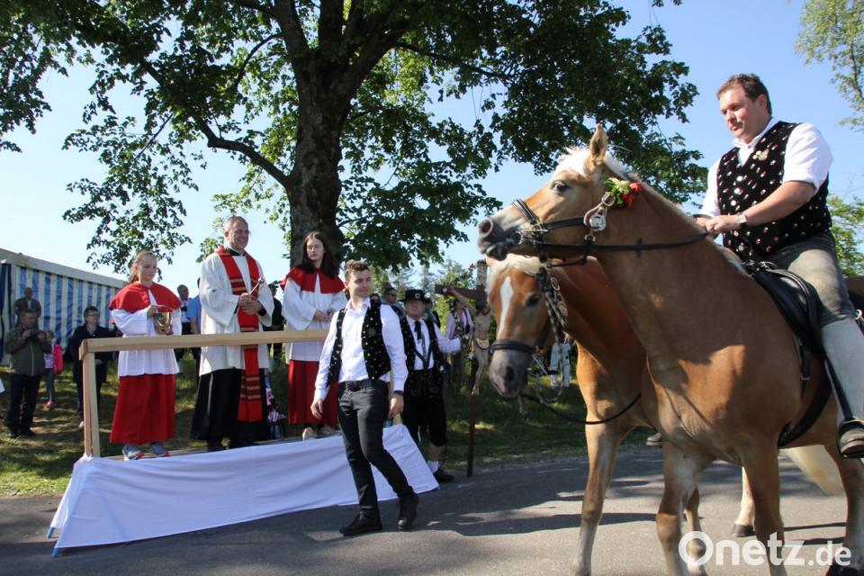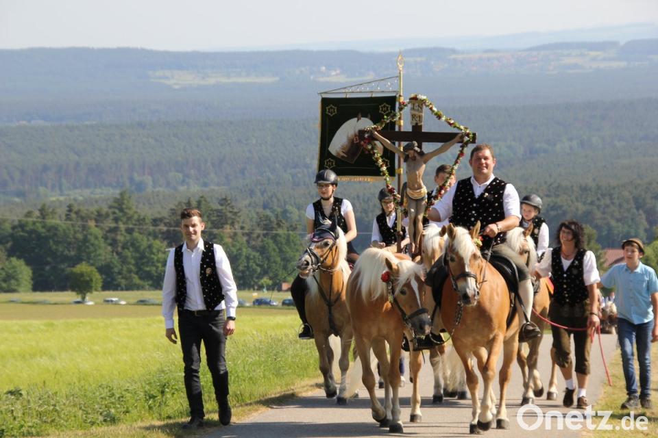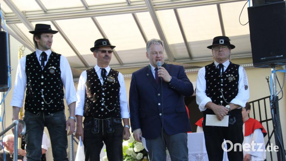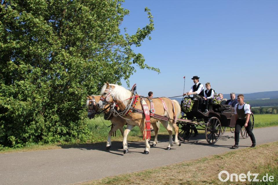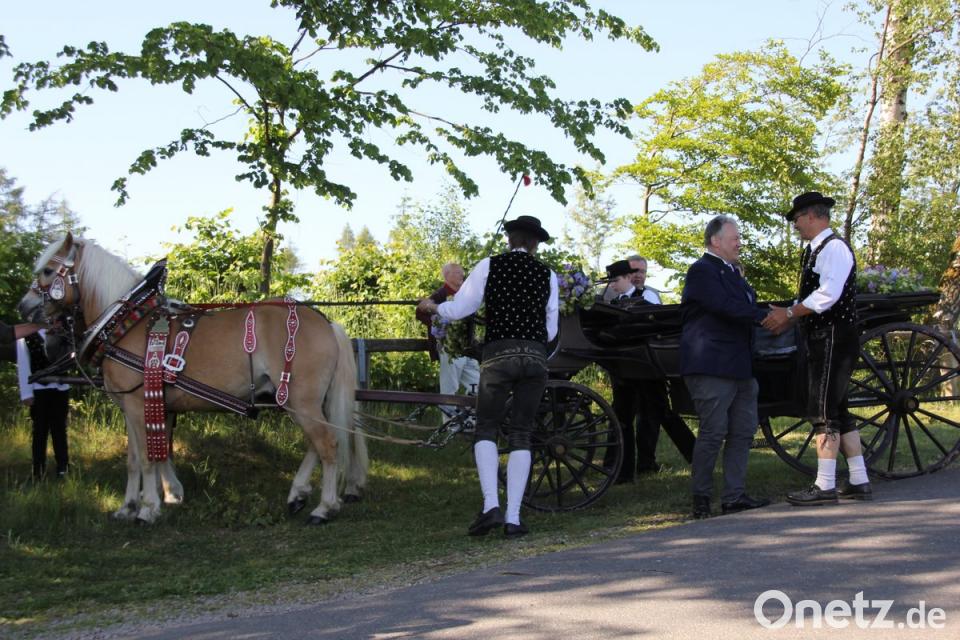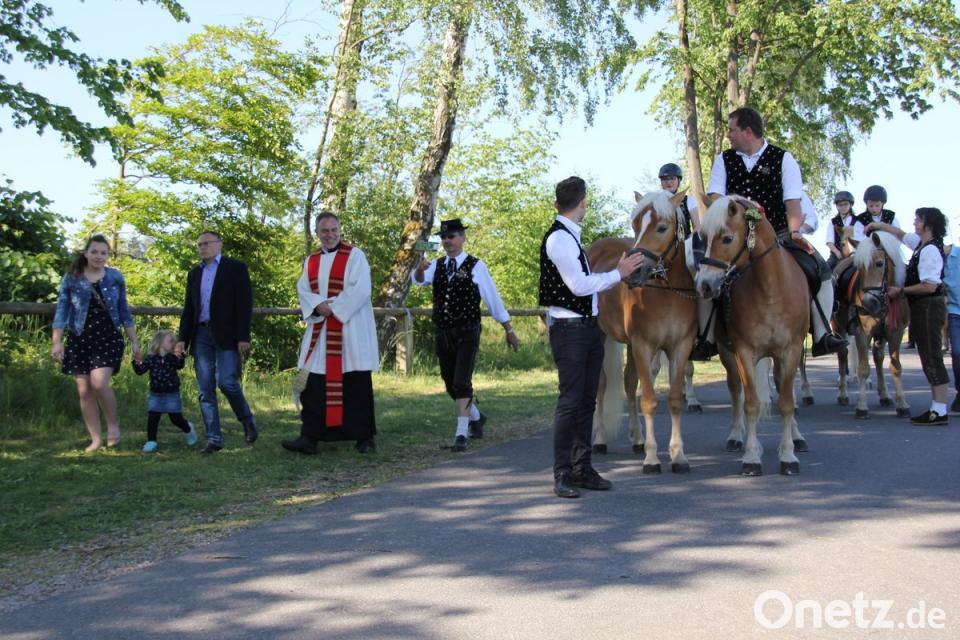 Sogar Alois Münch als ältestes Mitglied der Haflingerzüchter war mit 90 Jahren zum Pfingstritt gekommen. "Die Haflingerzüchter und Pferdefreunde Kemnath am Buchberg halten mit dem Pfingstritt an der Pflege und dem Erhalt eines uralten christlichen Brauchtums fest", sagte Gebert. Gebert informierte, dass es auf der Strecke heuer zu einem Gerangel der Pferde eines Vierspänners aus Hirschau gekommen ist, bei dem dank der langjährigen Erfahrung des Kutscher keine Person zu Schaden gekommen ist. Ein Pferd trug eine Verletzung davon. Als einen der schönsten Flecken der Oberpfalz bezeichnete Bürgermeister Sepp Reindl den Festplatz. Er zollte den Gastgebern Anerkennung für ihre Leistungen und den enormen Einsatz für den Pfingstritt. Er lobte die Flexibilität der Haflingerzüchter und Pferdefreunde, denn aufgrund des Baus der Umgehungsstraße von Kemnath am Buchberg musste der Streckenverlauf geändert werden.