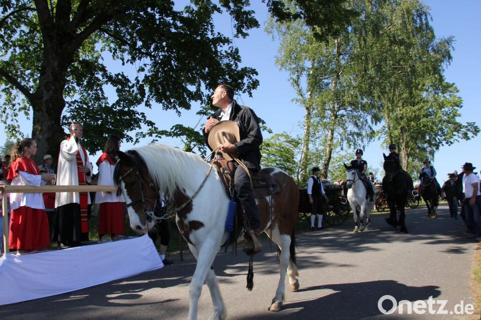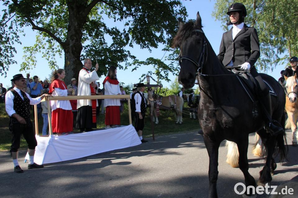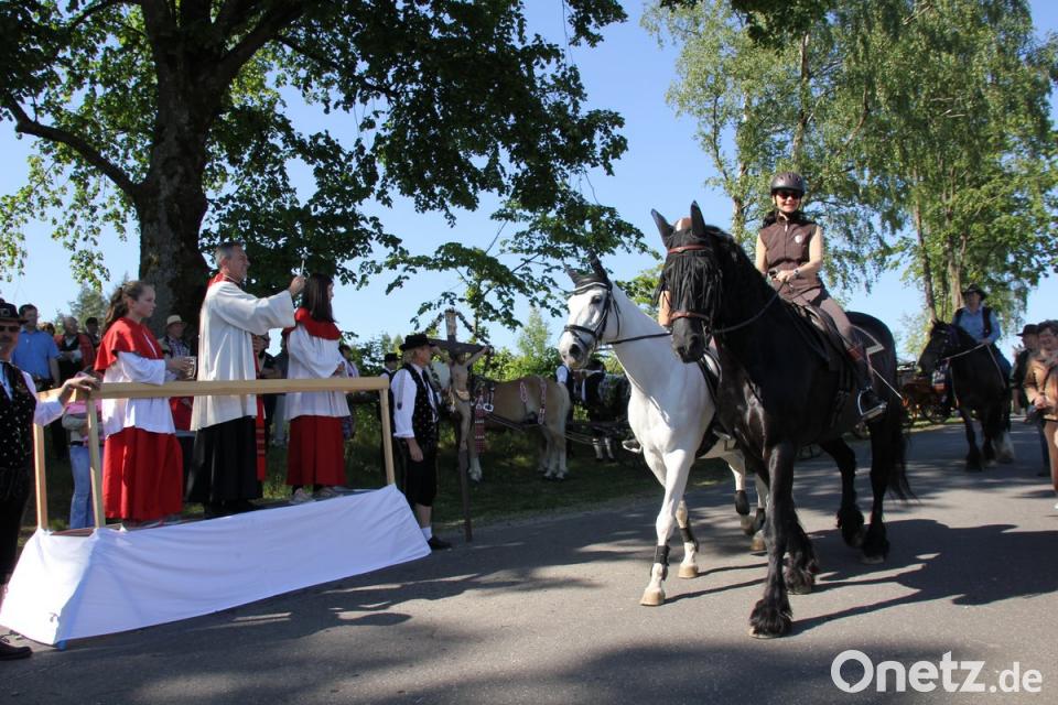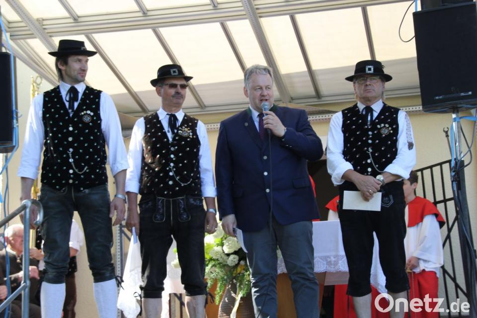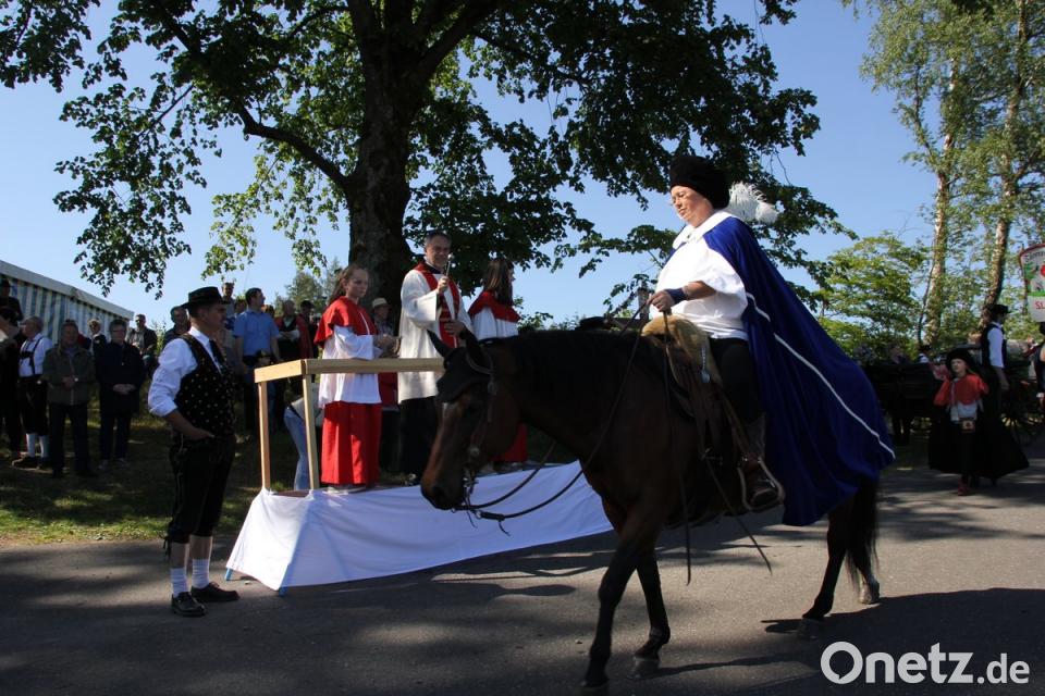 Sogar Alois Münch als ältestes Mitglied der Haflingerzüchter war mit 90 Jahren zum Pfingstritt gekommen. "Die Haflingerzüchter und Pferdefreunde Kemnath am Buchberg halten mit dem Pfingstritt an der Pflege und dem Erhalt eines uralten christlichen Brauchtums fest", sagte Gebert. Gebert informierte, dass es auf der Strecke heuer zu einem Gerangel der Pferde eines Vierspänners aus Hirschau gekommen ist, bei dem dank der langjährigen Erfahrung des Kutscher keine Person zu Schaden gekommen ist. Ein Pferd trug eine Verletzung davon. Als einen der schönsten Flecken der Oberpfalz bezeichnete Bürgermeister Sepp Reindl den Festplatz. Er zollte den Gastgebern Anerkennung für ihre Leistungen und den enormen Einsatz für den Pfingstritt. Er lobte die Flexibilität der Haflingerzüchter und Pferdefreunde, denn aufgrund des Baus der Umgehungsstraße von Kemnath am Buchberg musste der Streckenverlauf geändert werden.