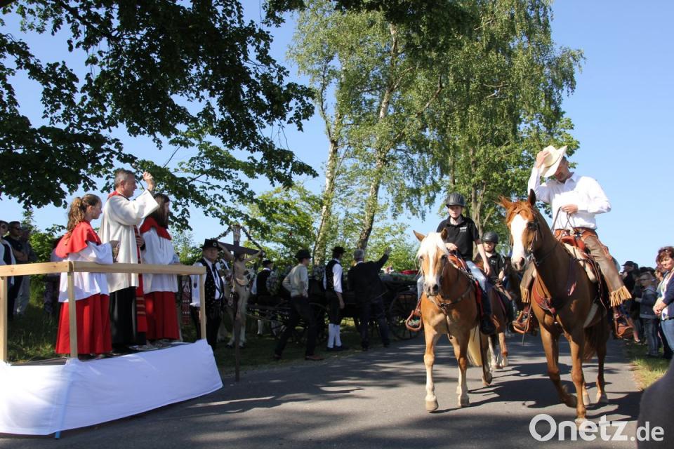 Vereinskassier Georg Bauer vollbrachte mit dem Aufstellen der Ehrenkutschen, der Gespanne, der Fahnenabordnungen hoch zu Ross und der Reiter eine wahre Meisterleistung. Erst dann setzte sich der Reiterzug, allen voran Markus Bierler mit dem Kreuz, in Bewegung. Für musikalische Unterhaltung sorgen das Buchbergecho und die Jagdhornbläser aus Nabburg mit einem Standkonzert am Kemnather Kirchplatz. Der Reiterzug gipfelte in der Segnung der Kutschen und Reiter an der Sebastiani-Kapelle durch Pfarrer Josef Irlbacher. Vorsitzender Lorenz Gebert, sein Stellvertreter Robert Zimmermann und Kassiers Georg Bauer zeigten sich erfreut über die große Besucherzahl, darunter Ehrenmitglieder und Ehrengäste wie Landrat Richard Reisinger.