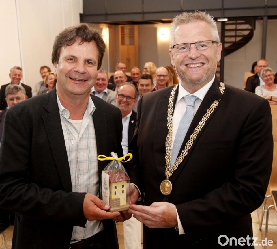 Für 40 Delegierte des Landesinnungsverbandes gab Oberbürgermeister Andreas Feller am Sonntagabend einen Empfang in der Spitalkirche und erinnerte an die Wurzeln der bayerischen Schornsteinfeger, die vor 112 Jahren in Schwandorf den Dachverband gegründet haben. Landesvorsitzender Heinz Nether überreichte dem Oberbürgermeister eine Blasturm-Miniatur als Symbol für den Brandschutz . Vom Bezirksvorsitzenden Peter Wilhelm bekam Feller eine Flasche "Grappa" mit dem Innungsemblem.