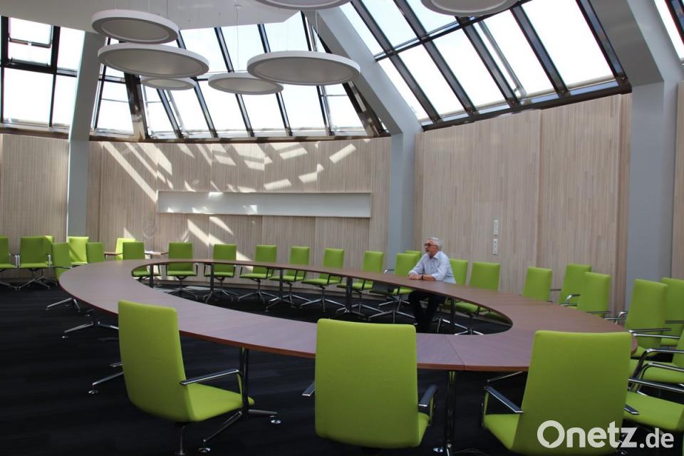 Ist alles erledigt, könnte er sich einen Tag der offenen Tür im Rathaus vorstellen. Wobei, so arg viel Sensationelles wird es dabei nicht zu sehen geben. Gut: Die Büros haben neue, dichtere Fenster und höhenverstellbare Schreibtische und die Beleuchtung im ganzen Haus wurde von Leuchtstoffröhren auf LED umgestellt. Aber das ganze Geld für die Sanierung floss in Maßnahmen und Umrüstung, um künftig mehr Energie sparen zu können. So bleiben als Blickfang und Modernitätsausweis für Besucher eigentlich nur die beiden Sitzungssäle übrig, die komplett neu gestaltet wurden.