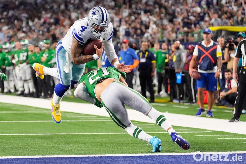 Mit 0:21 lag Dallas im zweiten Viertel gegen den amtierenden NFL-Champion mit Quarterback Jalen Hurts zurück. Es sah alles nach dem fünften Sieg in Serie der Eagles aus. Dann führte Cowboys-Star Prescott sein Team zurück ins Match. Die Entscheidung in einem Fehler-Festival im vierten Durchgang fiel wenige Sekunden vor dem Ende nach einem erfolgreichen Field Goal von Kicker Brandon Aubrey.