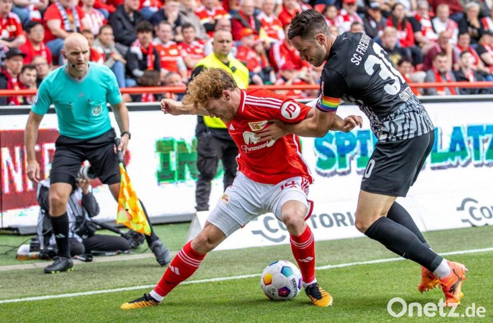 Union hatte mit einem Handelfmeter die große Chance zur Führung, doch Josip Juranovic scheiterte an Freiburgs Torwart Noah Atubolu (38.). Dann aber traf Benedict Hollerbach (68.) für die Berliner - zu diesem Zeitpunkt war Union gerettet. Ritsu Doan (85.) schoss Berlin wieder auf den Relegationsplatz, ehe Janik Haberer (90.+2) doch noch traf und Union jubeln ließ.