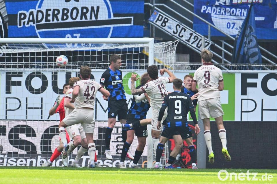 Die anfangs druckvolleren Gäste hatten zunächst die besseren Torchancen und gingen durch ein Kopfballtor von Vincent Vermeij verdient in Führung (32. Minute). Für Vermeij war es der siebte Saisontreffer. Die Dresdner versäumten es nach der Pause aber, das vorentscheidende zweite Tor zu erzielen. Erst traf Ben Bobzien nur die Latte (54.), dann scheiterte Christoph Daferner frei am Paderborner Torwart Dennis Seimen (63.). Kurz darauf erzielte der eingewechselte Tigges das 1:1 (66.) und markierte in der Schlussphase erneut per Kopf auch den Siegtreffer (85.).