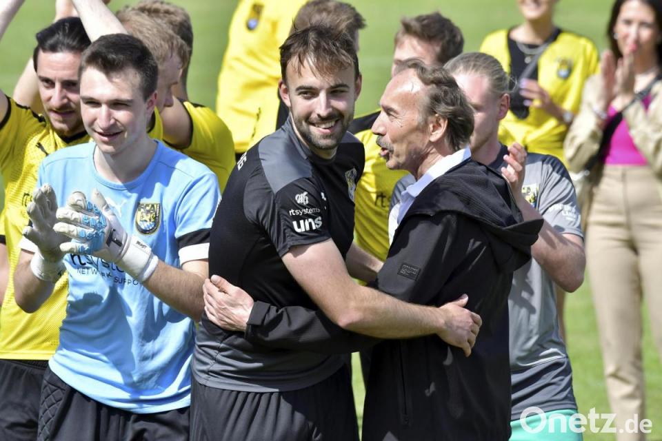 Nach den 94 Minuten des Landesligaspiels zwischen dem FC Amberg und dem SV Neukirchen HL. Blut hätte der objektive Beobachter nicht sagen können, ob hier eine Meisterschaft oder Klassenerhalt gefeiert wird. Denn vorher hatte der FC Amberg einen alles entscheidenden Sieg gegen den SV Neukirchen Hl. Blut förmlich herbeigearbeitet. Die Mannschaft von Karl-Heinz Wagner war im letzten Spiel der Saison körperlich und mental voll auf der Höhe, gegen einen starken Gegner, der quasi einer tschechischen Auswahl glich. Die Amberger lieferten das beste Heimspiel der Saison – und nach 30 Minuten vor dem Ende der Spielrunde 2021/22 war die Klasse gesichert. Entscheidend war eine Glanzleistung von Lukas Heinrich, der sich auf der Tribünenseite durch setzte, seinen scharfen Schuss lenkte SV-Keeper Ladislav Caba mit dem Oberarm zum alles entscheidenden 1:0 ins eigene Tor. Damit hatte der FC Amberg das Quäntchen Glück, das er oft in den 33 Spielen vorher nicht hatte.