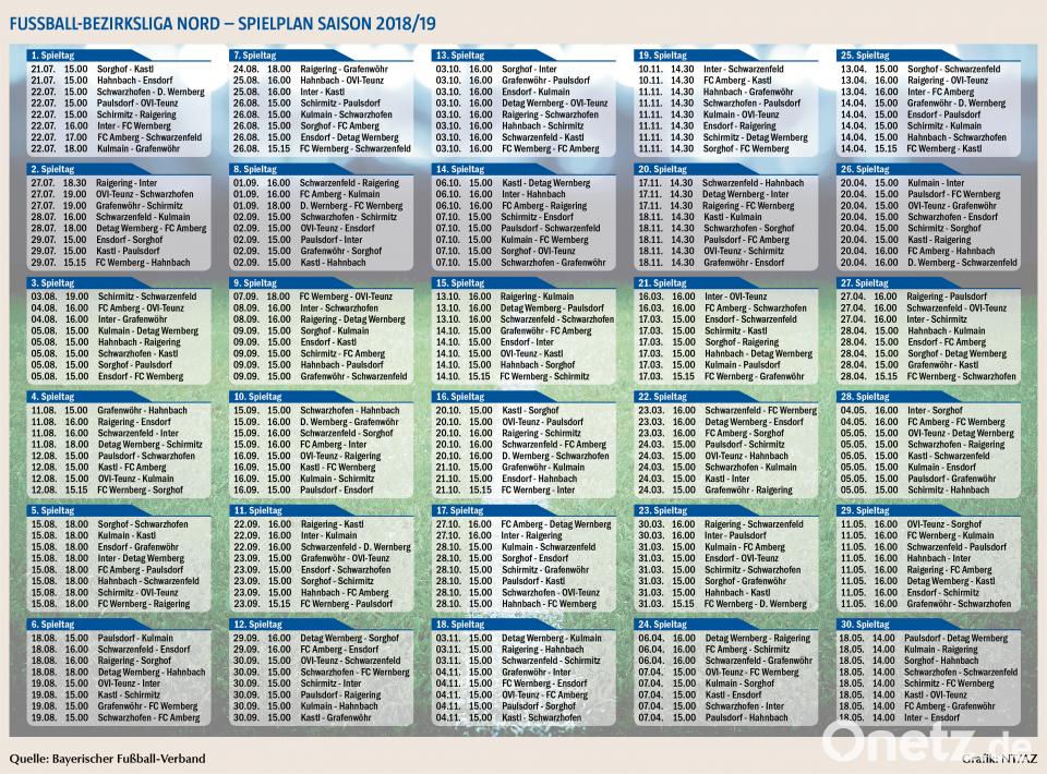 Der Spielplan der Bezirksliga Nord 2018/19.