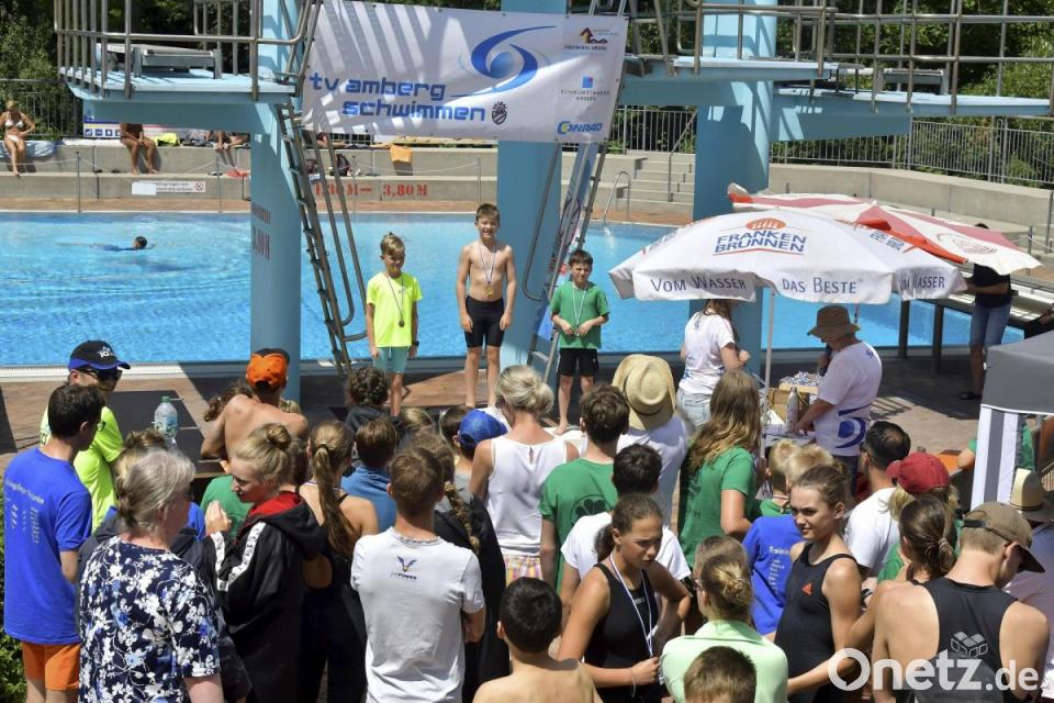 Die Stammgäste aus dem österreichischen Vöcklabruck, immer ein bärenstarkes Team, fehlten dieses Mal. „Dadurch war das Feld ausgeglichener“, sagte Renate Preuß von der Turnierleitung des TV Amberg. Mehr als 1200 Starts gab es am 50-Meter-Becken des Hockermühlbads. Für die reibungslose Abwicklung des Wettbewerbs wurden mehr als 40 Helfer gebraucht, sei es zum Verkauf, zum Auf- und Abbau oder als Kampfrichter.