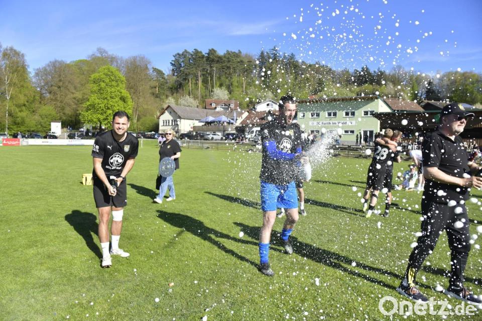 Die Sektkorken knallen: Wie der FC Amberg noch auf dem Platz die Meisterschaft feierte