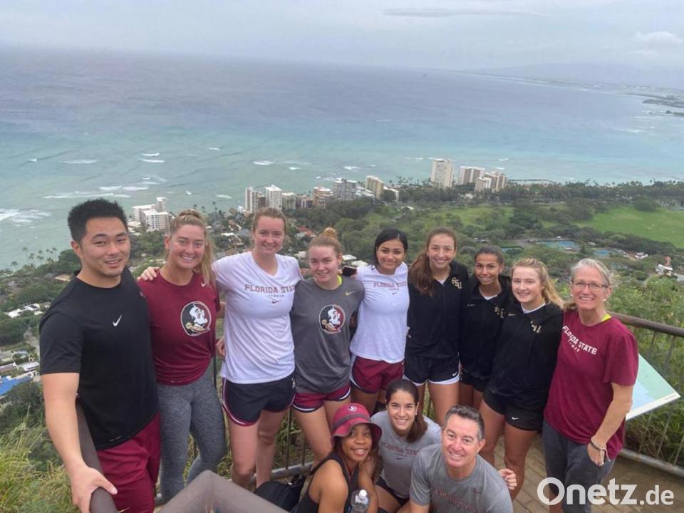 Die erste Begegnung - eine Traumpartie. "Das ist für mich ein Glücksfall, dass ausgerechnet in dem Jahr, in dem ich in Amerika bin, dieses Auswärtsspiel auf Hawaii stattfand", freut sich die 18-Jährige. Am Sonntag vor einer Woche ging's los: Eine Stunde Flug von Tallahassee nach Atlanta, dann zehn Stunden im Flieger nach Honolulu. "Wir mussten während des Fluges Kompressionsstrümpfe auf Anweisung der Trainerin anziehen, wegen der Gesundheit. Das war ein bisschen unbequem", erklärt Stegmann.