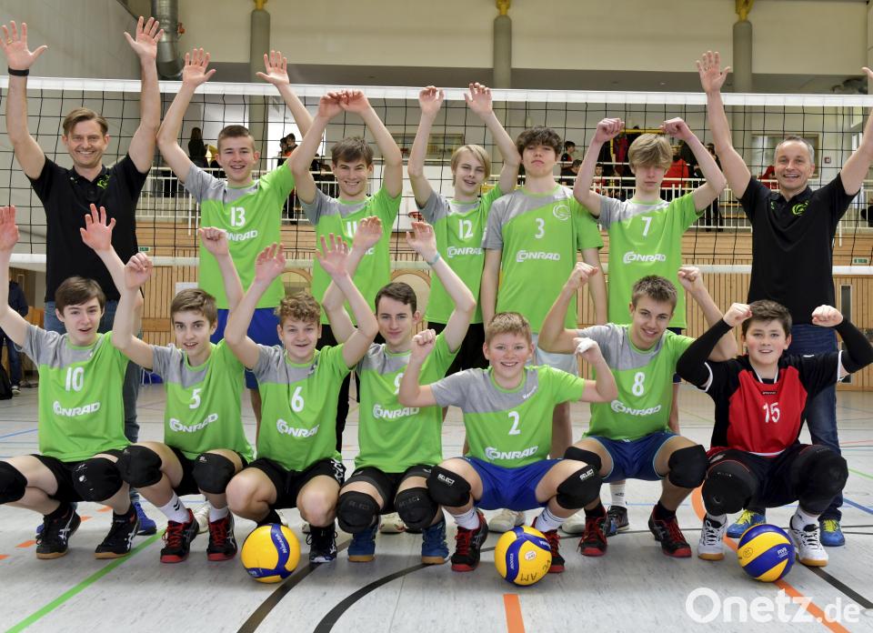 Die Volleyball-Jungs der U16 des VC Amberg (hinten von links): Trainer Thomas Schaller, Leo Rester, Xaver Müller, Paul Roggenhofer, Sebastian Helm, Laurenz Mecke und Trainer Stefan Franz. Vorne von links: Max Lobedan, Lukas Franz, Philipp Gießmann, Finn Martin, Ben Kühnert, Lionel Schaller und Korbinian Rumpler.