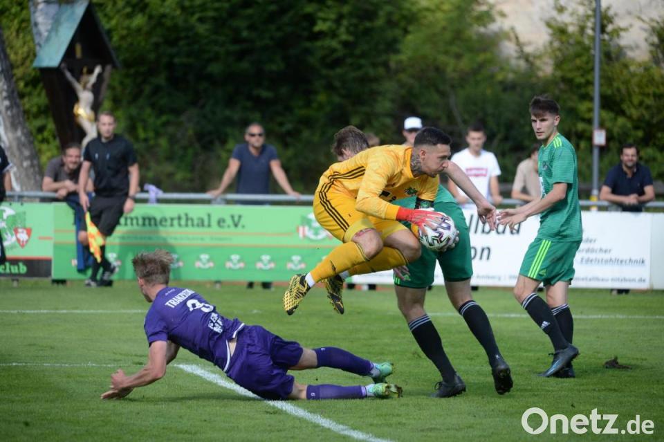 Der musste zunächst zusehen, wie Sommerer eine weitere Eins-gegen-Eins-Situation gegen Tranziska hervorragend meisterte (53.). Im direkten Gegenzug verpasste Kai Neuerer um Haaresbreite den Ausgleich, der im Verlauf nun mehrmals im Bereich des Möglichen lag. So wie in der 65. Minute, als Lukas Dotzler mit einem Gewaltschuss Gästeschlussmann Jan Griebel auf die Probe stellte. Kurze Zeit später war es Andre Karzmarczyk, dessen Freistoß knapp über den Querbalken strich. Die Hutzler- Elf war Mitte der zweiten Halbzeit richtig gut im Spiel, es roch zumindest mehrmals nach dem Ausgleich. Der schien in der 77. Minnte auch fällig, doch Manuel Geiger wurde im letzten Moment mit einem langen Bein am Einschuss gehindert.