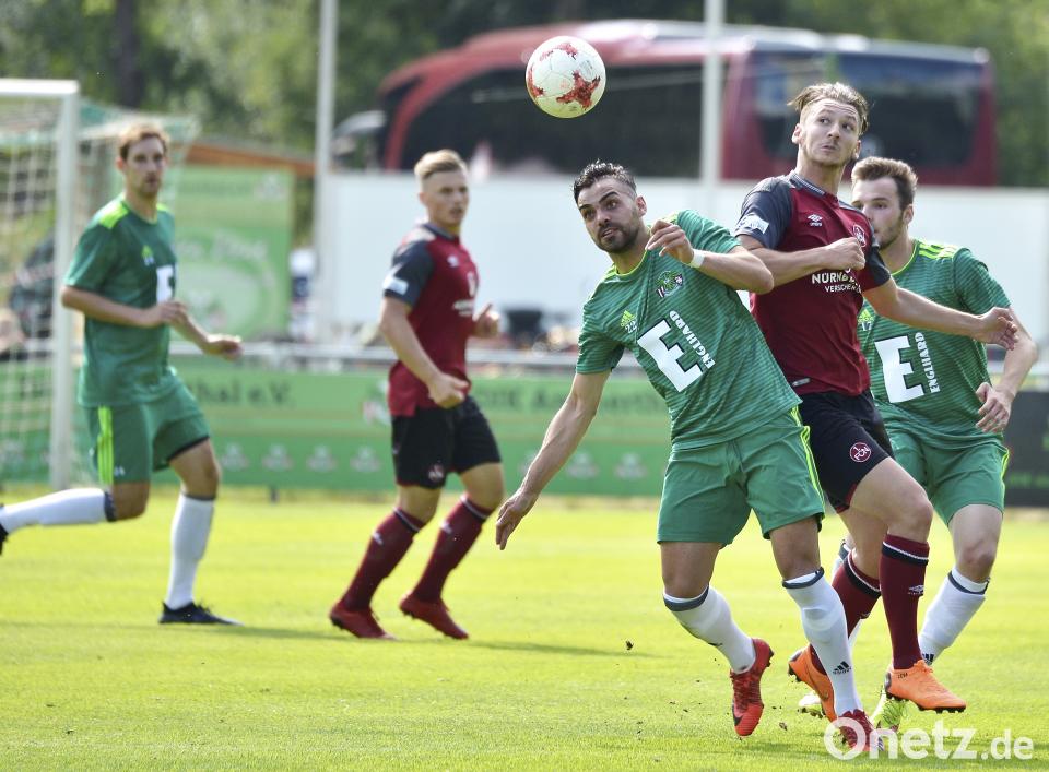 Ganz im Gegenteil: Die DJK wirkte zu Beginn optisch leicht überlegen und hatte durch Neuzugang Sebastian Zecho bei einem tollen Kopfball, den FCN-Torhüter Nikola Vasilj sensationell über die Latte lenkte, bereits in der 3. Minute die erste Gelegenheit. Ammerthal attackierte weiter früh, was in der 22. Minute belohnt wurde, als Mario Zitzmann den Ball eroberte und durchsteckte auf Michael Jonczy, der zum 1:0 traf. Die nächste hochkarätige Chance hatte Marco Weber (34.), doch Endstation war wieder bei Torhüter Vasilj. In der 42. Minute schien der Ausgleich fällig, doch DJK-Schlussmann Sommerer parierte gegen Engelhardt. Auch nach der Pause blieb es eine temporeiche Partie, wobei jetzt der Regionalligist die besseren Einschussmöglichkeiten hatte. Erik Engelhardt, der auffälligste FCN-Akteur, traf zunächst das Außennetz (63.), zwei Minuten später aus abseitsverdächtiger Position zum 1:1-Ausgleich.