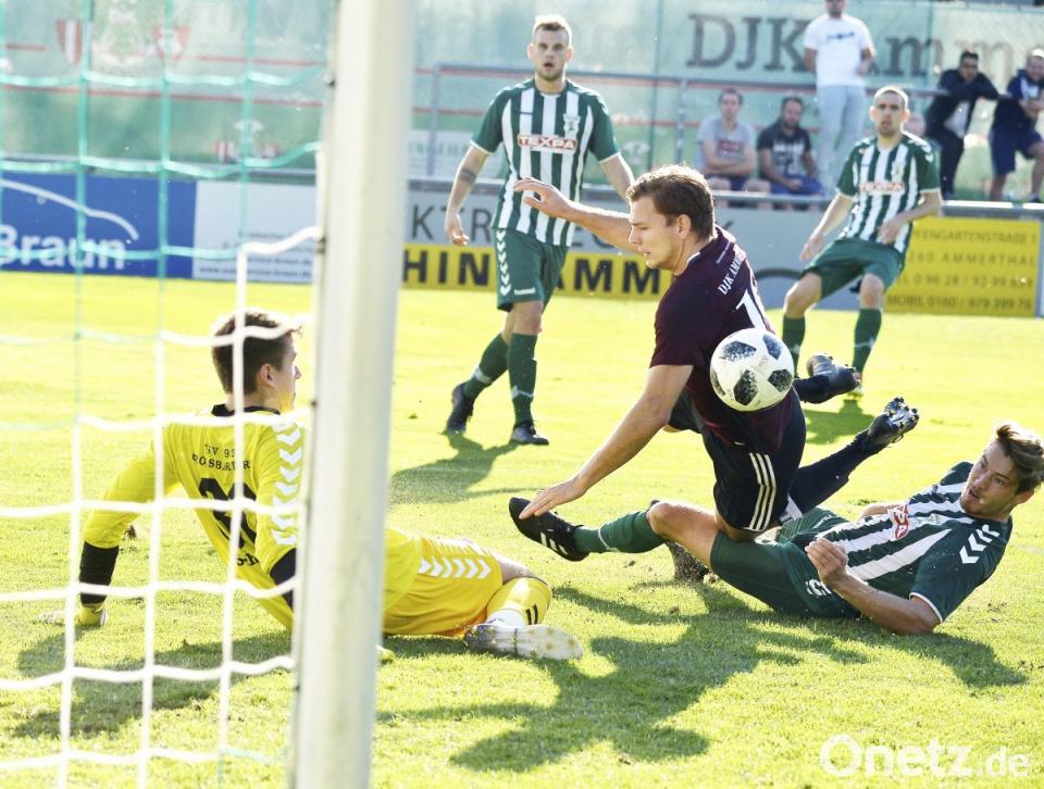 In eben jener Situation in der 25. Minute konnte sich Simon Snaschel im Fünfmeterraum ungehindert drehen und traf zum 0:1. Ein Tor aus heiterem Himmel. Zuvor hätte Ralph Egeter nach beherztem Einsatz die DJK in Führung bringen können, nachdem er alleine auf TSV-Torwart Julian Schneider zusteuerte, der ihm den Ball letztendlich vom Fuß schnappte (7.). Die DJK war weiter bemüht, den Gegner zu Fehlern zu zwingen, hatte auch einige gute Torchancen, allerdings fehlte im Abschluss etwas die Kaltschnäuzigkeit. Wie bei einer Top-Chance von Egeter (42.), zudem strich ein Schuss von Florian Fruth (43.) um Millimeter am langen Posten vorbei.