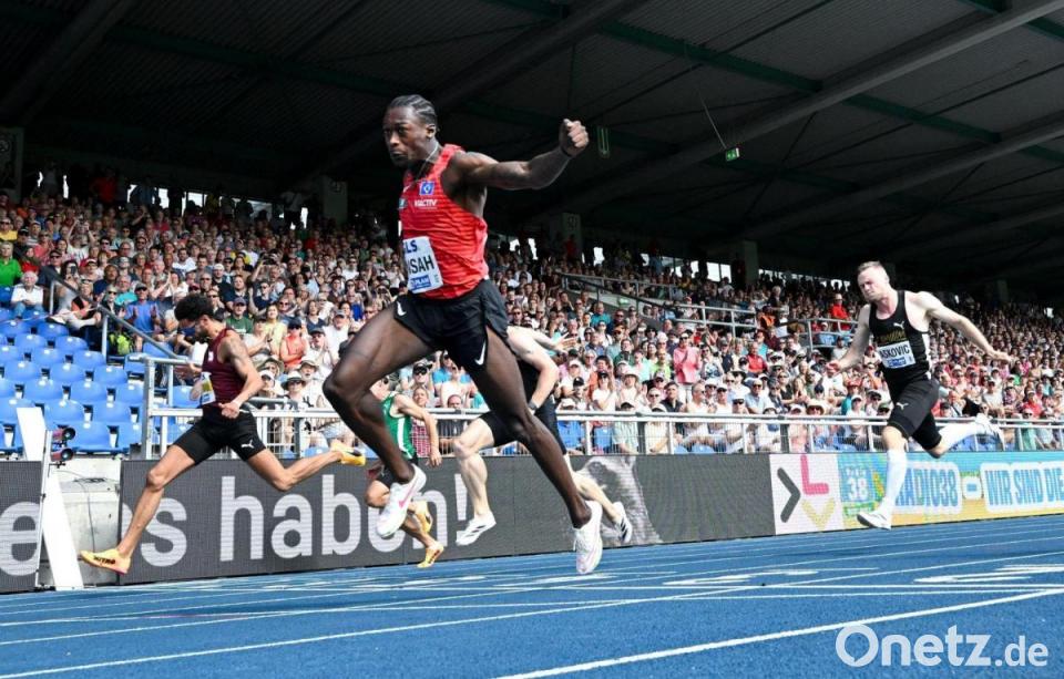 „Es musste irgendwann mal passieren. Heute ist es passiert und ich bin mega-happy, dass ich der Erste bin“, sagte Ansah am Stadion-Mikrofon, bevor er sich auf die Ehrenrunde begab. Er ist sicher bei Olympia dabei. Seine Bestzeit aus dem Jahr 2022 lag bei 10,08.