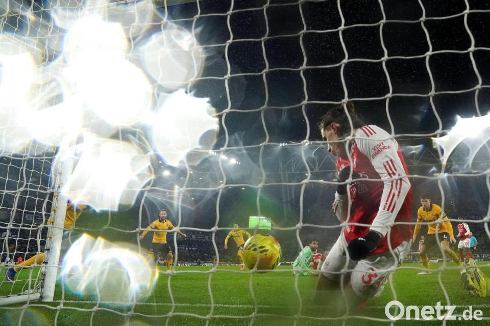 Doch vorher müssen die Gunners erst einmal das erneute Remis verarbeiten. Sechs Tage nach dem Unentschieden beim FC Brentford (1:1) führte Arsenal bei den Wolves durch Tore von Bukayo Saka und des Ex-Leverkuseners Piero Hincapié mit 2:0, ehe sie den sicher geglaubten Sieg noch aus der Hand gaben. Ein Treffer Hugo Bueno (61. Minute) und ein Last-Minute-Eigentor von Riccardo Calafiori (90.+4) sicherten der Heimmannschaft noch einen Punkt.