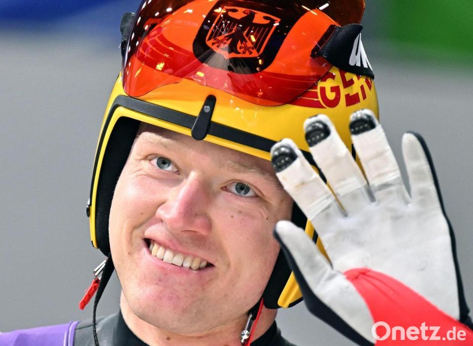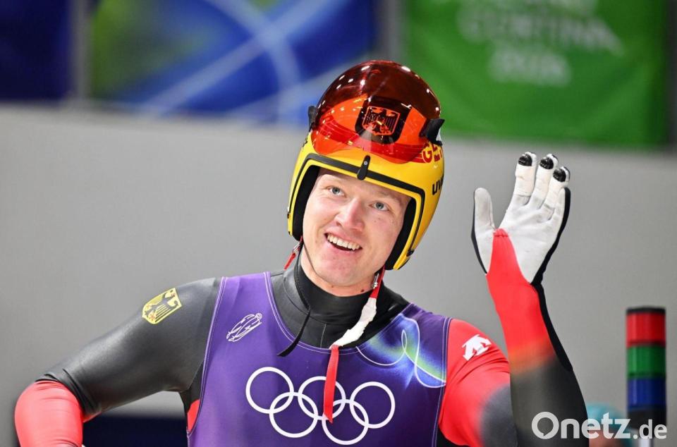Umhüllt von der Deutschland-Fahne verneigte sich Max Langenhan vor den Fans und holte sich zur Belohnung ein Küsschen seiner Freundin Susanne ab. Nach einer beeindruckenden Rekordshow war der Weltmeister zuvor mit Tempo 130 in den Rodel-Olymp gerast und hatte für den ersten deutschen Olympiasieg bei den Winterspielen in Mailand und Cortina d'Ampezzo gesorgt - und das trotz eines steifen Halses als Handicap. Als er seinen letzten Parforceritt mit dem vierten Bahnrekord im vierten Lauf absolviert hatte, breitete er im Eiskanal die Arme aus und verdrückte im Ziel Freudentränen.
