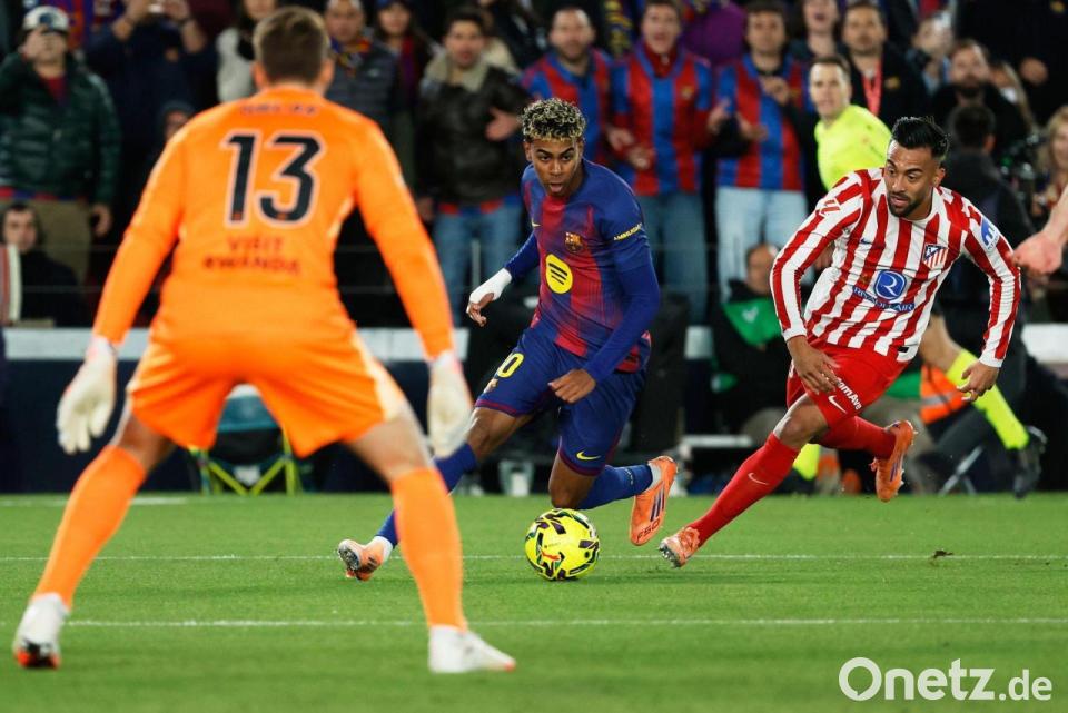 Alex Baena schoss die Gäste vor 45.205 Zuschauern auf der Baustelle Camp Nou nach einem Konter per Außenrist in Führung (19. Minute). Der Brasilianer Raphina glich für die dominierenden Katalanen nur wenig später aus (26.). Lewandowski hatte dann nach einem Foul an Dani Olmo die große Chance auf das 2:1, doch der frühere Bayern-Star vergab vom Elfmeterpunkt kläglich (37.): Sein Versuch ging deutlich über das Atletico-Tor.