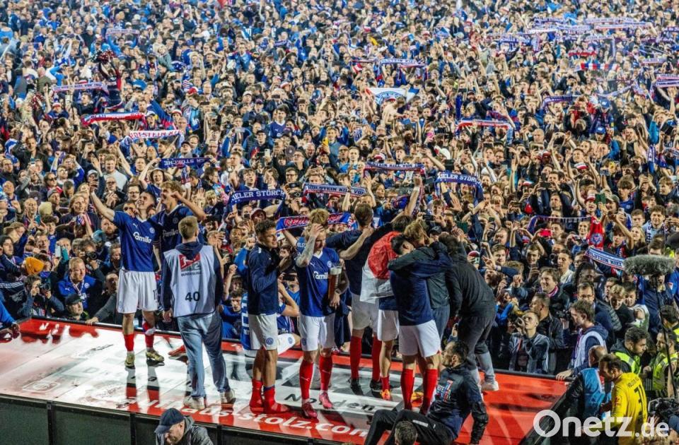 Was das am späten Samstagabend und in der Nacht an Begeisterung auslöste, haben selbst die Kieler Handballer nach ihren 23 Meisterschaften und vier Champions-League-Siegen nie geschafft. Über dem Holstein-Stadion wurde ein Feuerwerk gezündet. Autokorsos fuhren von der Arena durch die Stadt. Der Torwart Thomas Dähne trug das Maskottchen des Clubs in Form einer Storch-Mütze auf dem Kopf und suchte in dem ganzen Trubel seine Tochter und seine Frau.