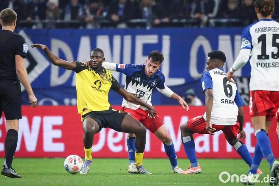 Es dauerte lange, bis ein Tor fiel. Nach über einer Stunde gelang Carney Chukwuemeka (64.) der Treffer zum Sieg der Borussen, die am Mittwoch in der Champions League noch ein ernüchterndes 1:4 gegen Manchester City kassiert hatten. Dass es nicht mit dem dritten 1:0 der Borussen nacheinander wurde, lag auch an der eigenen Ungefährlichkeit - und dem Drang der Hamburger in der Schlussphase, belohnt durch den Ausgleichstreffer von Ransford-Yeboah Königsdörffer in der siebten Minute der Nachspielzeit.