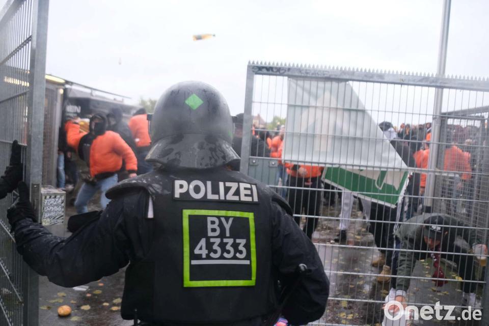 Laut den Ermittlungsbehörden hatten die Dynamo-Anhänger ihre Gesinnung bereits bei ihrer Ankunft am Bayreuther Bahnhof deutlich gemacht. "Szenetypisch rotteten sie sich zusammen, um gemeinsam ihren Weg zum Hans-Wild-Stadion anzutreten. Hochaggressiv und nicht empfänglich für jede Art von Belehrungen durch die Polizei gingen sie los", heißt es in der Pressemitteilung. Schon in dieser Phase kam es demnach zum Übergriff auf einen Pressefotografen, den sie in die Menge zogen und beide Fotokameras entrissen.