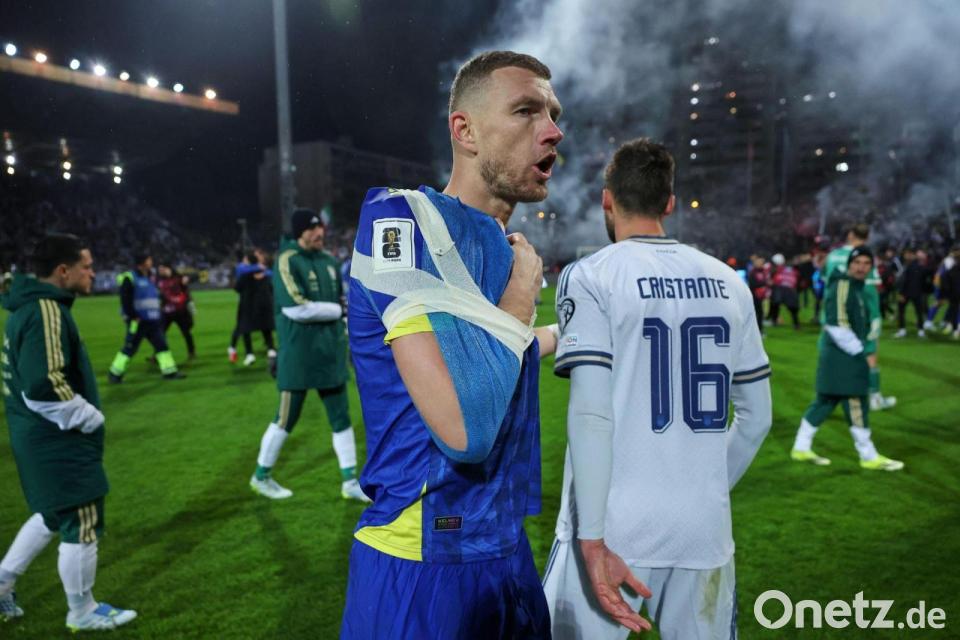 Mit einer Schulterschlinge zum Schutz ließ sich der verletzte Edin Dzeko von Zehntausenden Fans in Sarajevo feiern. Mit der linken Hand winkte der Stürmerstar des FC Schalke 04 nach dem Playoffsieg gegen Favorit Italien von einem Balkon und bejubelte das WM-Ticket für Bosnien-Herzegowina. In Gelsenkirchen sind die Sorgen hingegen groß: Fehlt der 40 Jahre alte Ausnahmefußballer Schalke nun in den entscheidenden Spielen um den Bundesliga-Aufstieg?