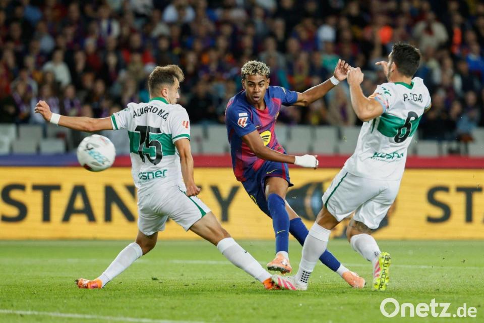 Der FC Barcelona hat die 1:2-Pleite im Clásico in Madrid vom vergangenen Wochenende gut verarbeitet und bleibt in der spanischen Fußball-Liga der ärgste Verfolger von Tabellenführer Real. Das Team von Trainer Hansi Flick feierte zu Hause gegen den FC Elche einen ungefährdeten 3:1 (2:1)-Sieg.
