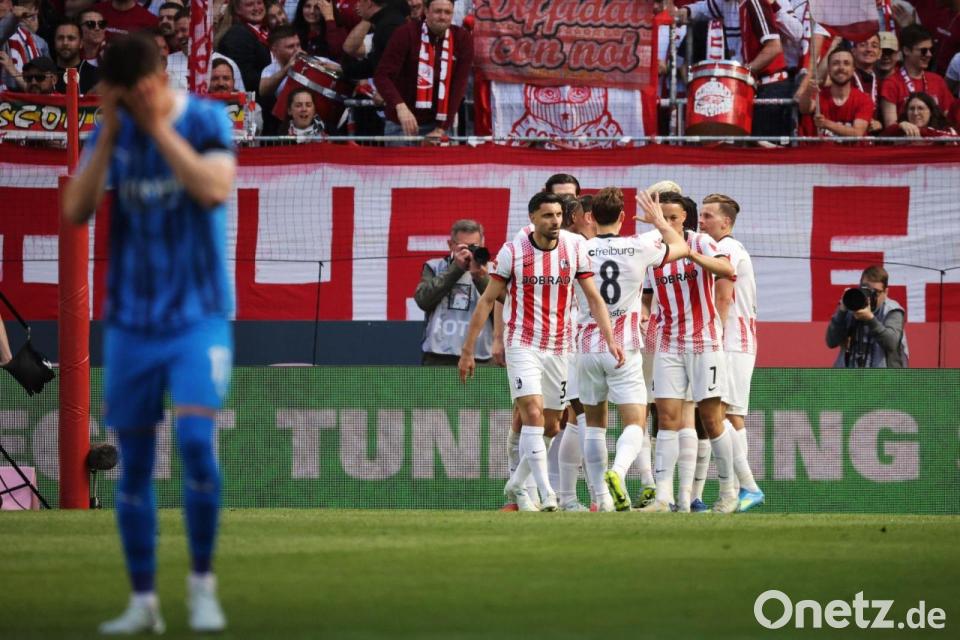 Beflügelt von der Halbfinal-Premiere in der Europa League und dank eines späten Treffers hat der SC Freiburg seine Ambitionen auch in der Bundesliga untermauert. Mit dem 2:1 (1:0) gegen den 1. FC Heidenheim verstärkten die Breisgauer zugleich die ohnehin schon großen Abstiegssorgen des Tabellenletzten, der nun kaum mehr zu retten ist.