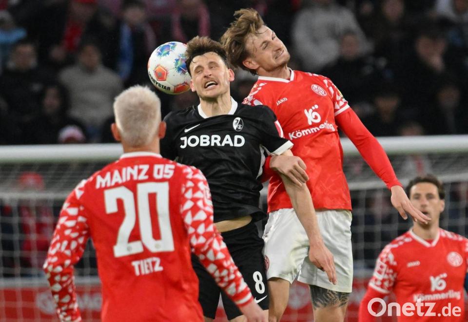 Im Sandwich-Spiel zwischen ihren internationalen Auftritten legten beide Teams vor 30.000 Zuschauern ein Spiel mit vielen Nickeligkeiten, aber wenig Höhepunkten hin. Die Mainzer treten nach dem 2:0 im Hinspiel der Conference League am Donnerstag bei Racing Straßburg an. Freiburg will nach dem furiosen 3:0 gegen Celta Vigo am selben Tag in Spanien ins Halbfinale der Europa League einziehen.