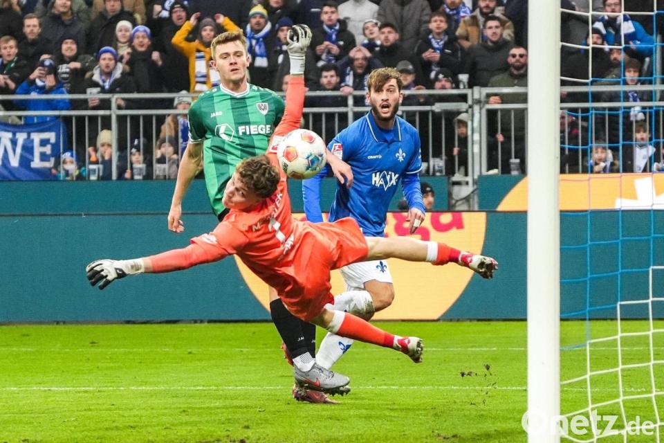 Der SV Darmstadt 98 bleibt im Aufstiegskampf der 2. Fußball-Bundesliga oben dran. Im letzten Heimspiel des Jahres setzten sich die Lilien mit 1:0 (0:0) gegen Preußen Münster durch. Vor 17.589 Zuschauern im Stadion am Böllenfalltor nutzte Killian Corredor in der 56. Minute einen Abpraller per Kopf zum entscheidenden Tor.