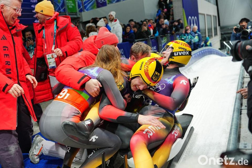Die deutschen Gold-Rodler lagen noch auf dem Schlitten, da stürmten die Teamkollegen schon mit funkelnden Augen in den Eiskanal. Mit lauten Jubelschreien, Tränen und Fahnen feierte die Team-Staffel nicht nur einen historischen Abschluss der Rodel-Wettbewerbe, das Duo Tobias Wendl und Tobias Arlt krönte sich mit dem insgesamt siebten Olympiasieg seit 2014 zu Deutschlands erfolgreichsten Winter-Olympioniken.