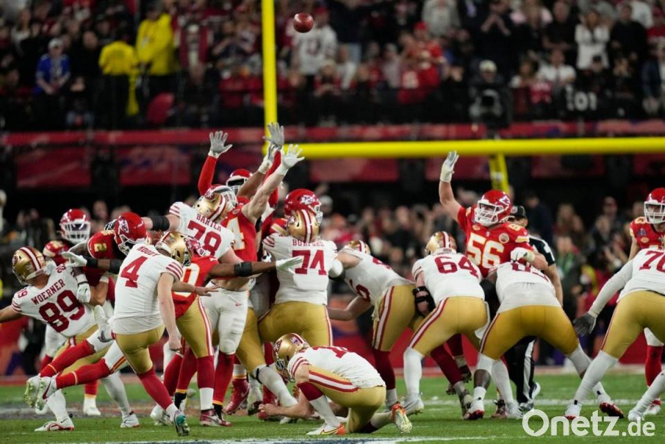 So ging es zunächst weiter. Die 49ers wirkten wacher, aggressiver und stärker, kassierten aber viele unnötige Strafen für Festhalten oder Abseits. Von der viel größeren Super-Bowl-Erfahrung der Chiefs war nichts zu sehen. Das Team um Mahomes und Kelce kam überhaupt nicht in Gang. 49ers-Kicker Jake Moody erzielte aus 55 Yards ein Field Goal für die 49ers und stellte damit einen Super-Bowl-Rekord auf - der später von Chiefs-Kicker Harrison Butker um zwei Yards überboten wurde.
