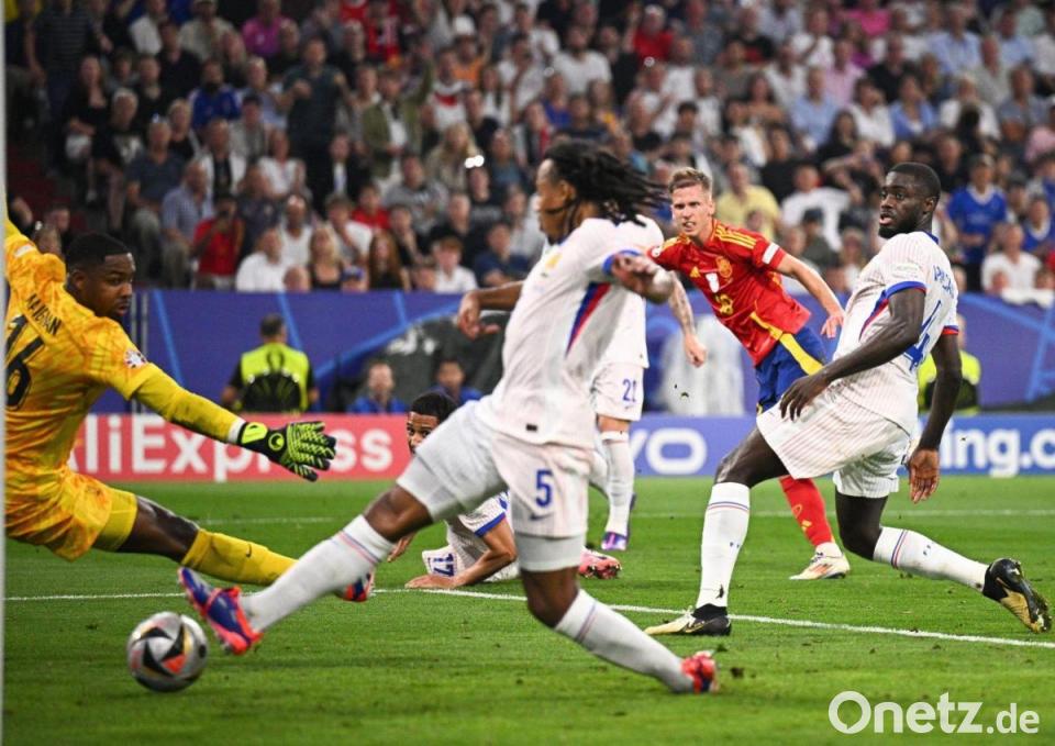 Der Leipziger, gegen Deutschland mit einem Tor und einer Vorlage der entscheidende Akteur, unterstrich seine couragierten Aussagen auch auf dem Rasen. Eine abgefälschte Flanke von Jesus Navas landete im Sechzehner vor seinen Füßen. Den wuchtigen Schuss konnte auch Frankreichs rechter Außenverteidiger Jules Koundé kurz vor der Torlinie nicht mehr abwehren.