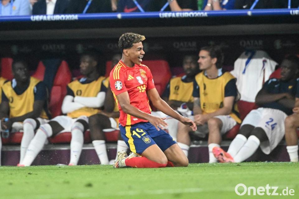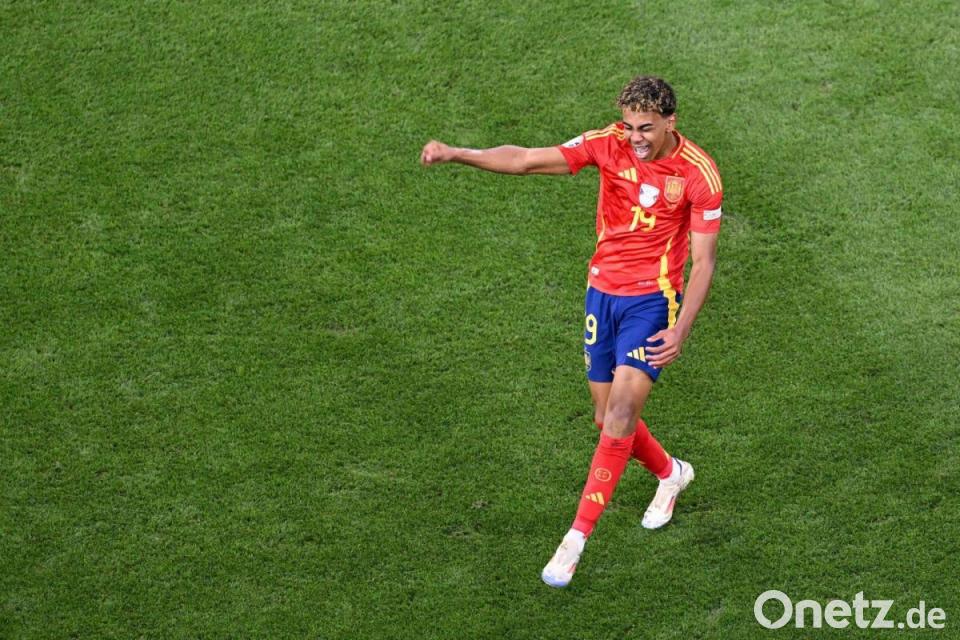 Das Juwel des FC Barcelona löste mit seinen 16 Jahren den Schweizer Johan Vonlanthen als jüngsten EM-Torschützen ab. Vonlanthen war 2004 bei seinem Treffer beim 1:3 der Schweiz gegen Frankreich 18 Jahre und 141 Tage alt gewesen. Yamal wird einen Tag vor dem Endspiel in Berlin am Sonntag (21.00 Uhr) 17.