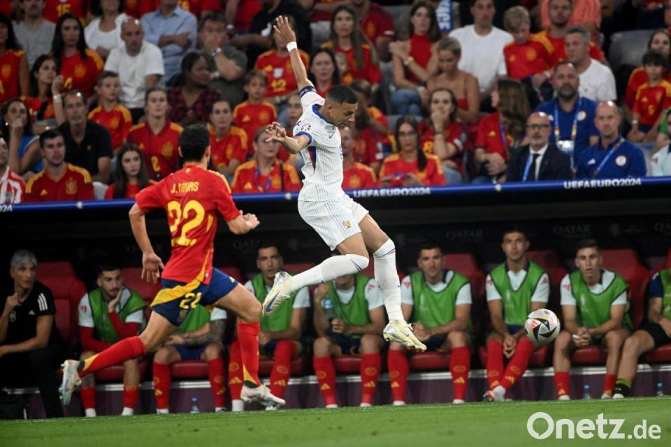 Superstar Mbappé trat erstmals nach seinem Nasenbeinbruch, den er im französischen Eröffnungsspiel gegen Österreich (1:0) erlitten hatte, wieder ohne Maske auf. Der neue Star von Real Madrid wirkte wie von einer Last befreit und stellte den schon 38 Jahre alten Jesus Navas - neben Nacho und dem Leipziger Olmo einer von drei Neuen in der Anfangsformation der La Roja - auf der rechten spanischen Abwehrseite vor eine Daueraufgabe.