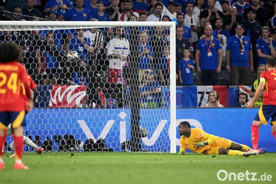 Die Spanier konterten mit einem genialen Moment von Supertalent Yamal, dessen Traumtor aus 25 Metern den linken Innenpfosten touchierte und im Kasten des machtlosen Schlussmanns Mike Maignan landete.
