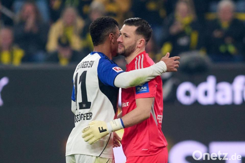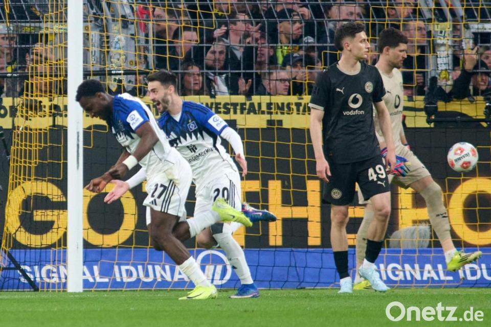 Während die zuvor noch ausgepfiffenen BVB-Profis nach einem Sturmlauf im zweiten Durchgang von der Südtribüne am Ende doch noch gefeiert wurden, musste HSV-Coach Merlin Polzin seine Profis trösten. Im Kreis schwor Polzin sein Team nach dem 2:3 (2:0) auf die restlichen Spiele im Abstiegskampf der Fußball-Bundesliga ein. Jubeln durfte trotz Hamburger Pausenführung nur das Team von Dortmunds Coach Niko Kovac - dank zwei Elfmetertoren aus drei Versuchen vom Punkt.