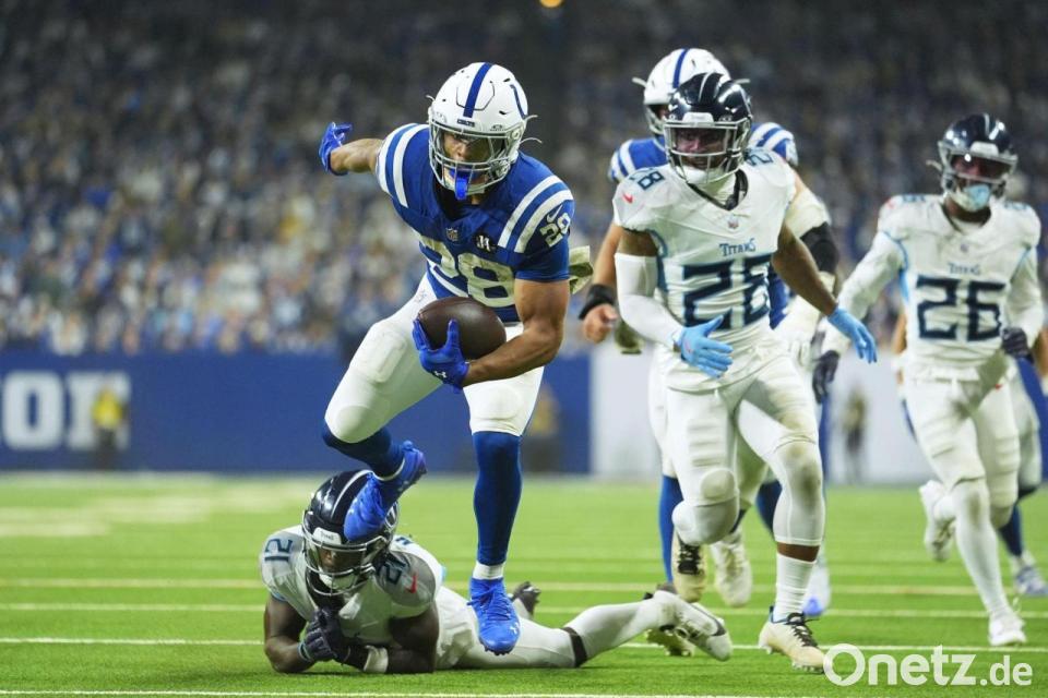 NFL-Profi Jonathan Taylor hat beim nächsten Sieg der Indianapolis Colts schon wieder drei Touchdowns gegen die Tennessee Titans erzielt - und damit einen Rekord aufgestellt. Wie im letzten Duell der vergangenen Saison und beim 41:20 im September holtete der Runningback der Colts auch beim 38:14 für sein Team 18 Punkte. Eine solche Ausbeute gegen denselben Gegner gab es in der National Football League laut US-Medien zuvor noch nie. Mit insgesamt 14 Touchdowns in dieser Saison führt er die Liga-Statistik an.