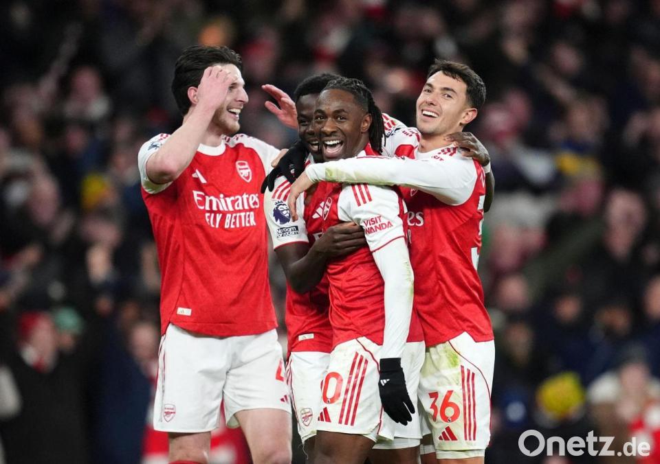 Drei Tage vor dem Champions-League-Duell mit dem FC Bayern hat sich der englische Fußball-Tabellenführer FC Arsenal in der Premier League in Topform präsentiert. Die Gunners setzten sich im Nord-London-Derby mit 4:1 (2:0) gegen den Erzrivalen Tottenham Hotspur durch. Mann des Spiels war Eberechi Eze, der drei Tore erzielte.