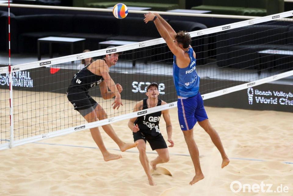 Ausgeschieden sind dagegen Lukas Pfretzschner und Sven Winter. Die deutschen Meister unterlagen den Franzosen Téo Rotar und Arnaud Gauthier-Rat mit 1:2. Dem 19:21 im ersten Satz ließen Pfretzschner/Winter im zweiten Durchgang ein 21:17 folgen. Im Tiebreak nutze das Team aus Frankreich dann den ersten Matchball zum Einzug ins Semifinale. Dort treffen Rotar/Gauthier-Rat auf das zweite schwedische Duo Jacob Hölting Nilsson und Elmer Andersson.