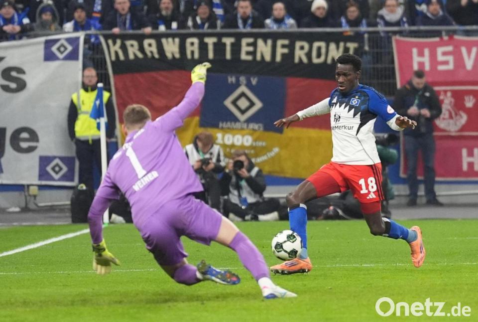 In der Verlängerung veränderte sich das Spiel nicht entscheidend. Kurz vor Ende der ersten Hälfte gab es etwas Trubel im Strafraum der Kieler, Vieira schaltete am schnellsten, doch erneut entschied Torwart Weiner das persönliche Duell für sich. Es brauchte erst 107 Minuten, ehe Jatta nach einer scharfen Hereingabe von Muheim die HSV-Fans erlöste - vermeintlich. Doch dann brachte Harres die Kieler ins Elfmeterschießen. Und verwandelte den letzten Strafstoß.