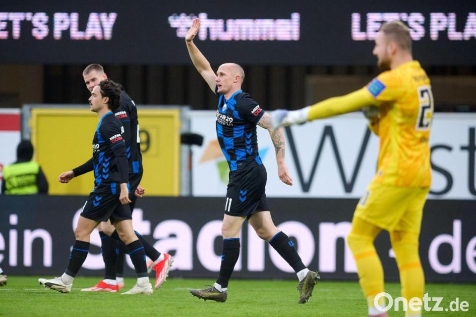 Sven Michel (52.) traf zum zwischenzeitlichen Ausgleich für die Paderborner, die nach einer Roten Karte für Calvin Brackelmann (58.) mehr als eine halbe Stunde in Unterzahl spielen mussten. Der Abwehrspieler hatte Schmahl von hinten abgegrätscht.