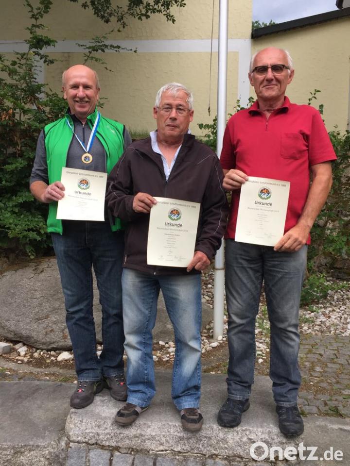 Drei Vilstalschützen aus Emhof setzten in den vergangenen Monaten Akzente, und zwar im Seniorenbereich. Alfred Hummel, Hermann Höfle und Michael Sollfrank bescherten den Vilstalschützen bei der Bayerischen Meisterschaft im Oberpfälzer Schützenbund (OSB) den bisher größten sportlichen Erfolg in der Vereinsgeschichte. Alfred Hummel belegte bei den Senioren im Aufgelegt-Schießen den ersten Platz und wurde Landesmeister mit 313,9 Ringen, ein überragendes Ergebnis. In der weiteren Einzelwertung belegten Hermann Höfle mit 311,1 Ringen den vierten Platz und Michael Sollfrank (311,0) den fünften Platz. Diese drei Ergebnisse reichten zu einem weiteren Meistertitel in der Mannschaftswertung. Hier belegte die Mannschaft Senioren I männlich der Vilstalschützen mit 936 Ringen den ersten Platz vor Edelweiß Obersdorf (927,6) und der SG Neumühle (919,7). Diese beiden Meistertitel bei der Bayerischen Meisterschaft im OSB sind nicht nur der schönste und größte Erfolg für die Vilstalschützen, sondern auch Ergebnis guter Arbeit im Seniorenbereich. Als Schützenmeister Theo Hummel Post vom Deutschen Schützenbund erhielt, kam ein weiterer Grund zum Feiern dazu: Die Mannschaft mit Alfred Hummel, Michael Sollfrank und Hermann Höfle hat sich zur Deutschen Meisterschaft qualifiziert - das erste Mal für eine Mannschaft aus Emhof. Diese findet am 28. Oktober in Dortmund statt.